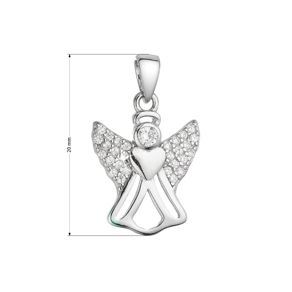 Prívesok zo striebra o rýdzosti 925/1000 v tvare anjela pôsobí jemne a krehko. Tenká vrstva ródia, ktorou je opatrený chráni šperk pred oxidáciou, zvyšuje jeho odolnosť pri každodennom nosení, je antialergénne a zvýrazňuje striebristú farbu, do ktorej je anjel odetý. Krídla vysadené mnohými zirkónmi prepožičiavajú prívesku žiarivý ligot.