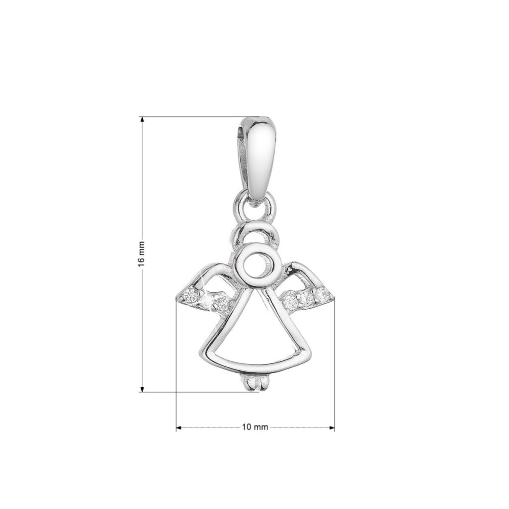 Prívesok je vyrobený zo striebra o rýdzosti 925/1000 , jemne zdobený malými zirkónmi na krídlach anjela. Neobsahuje nikel, a tak ho bez obáv môžu nosiť aj alergici.