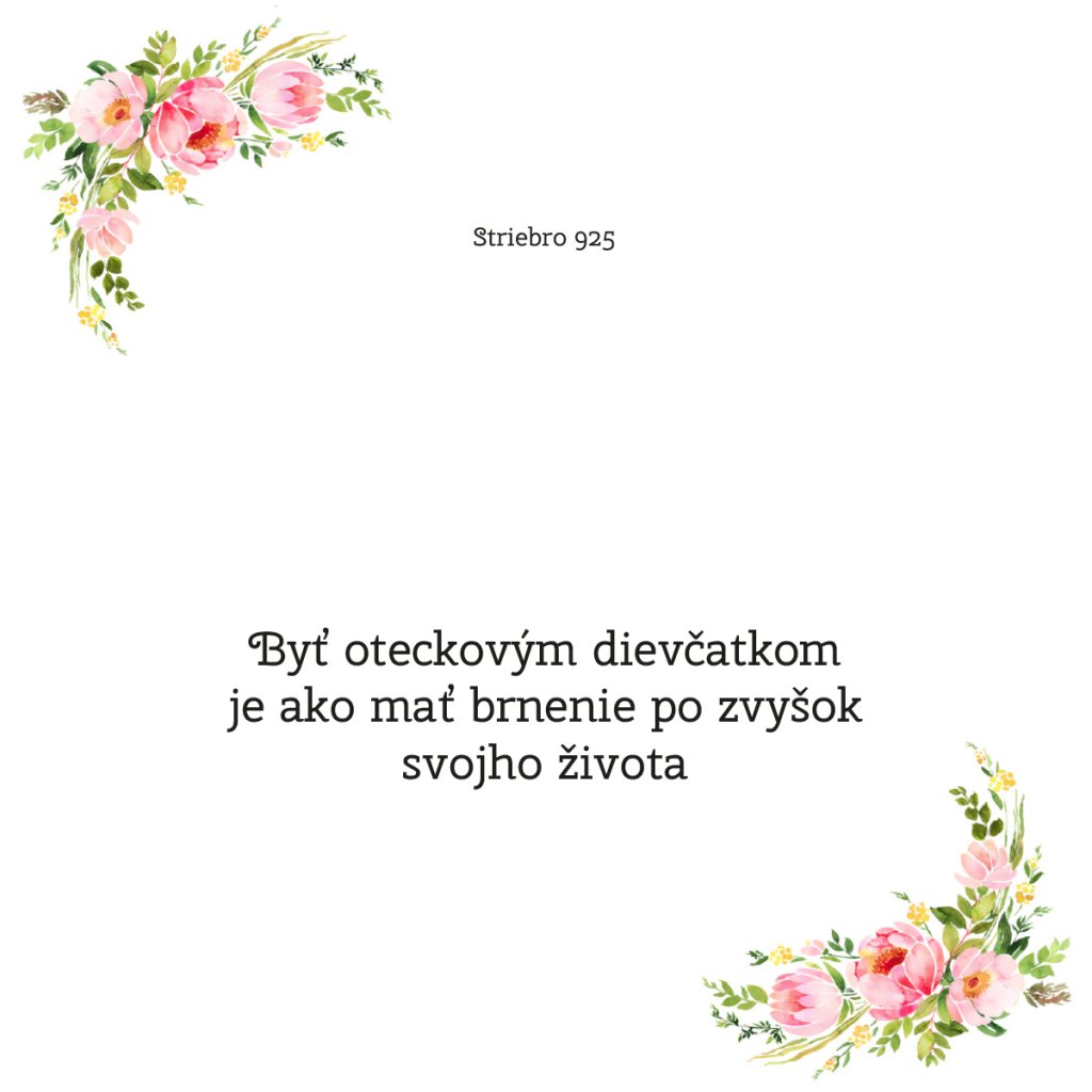 Darčekový set obsahuje strieborný prívesok anjelika, ktorý je zavesený na darčekovej karte s nádherným prianím "Byť oteckovou dievčatkom je ako mať brnenie po zvyšok svojho života". Každý otec je hrdý na svoju jedinečnú dcéru, chce ju chrániť a dodávať pocit bezpečia.