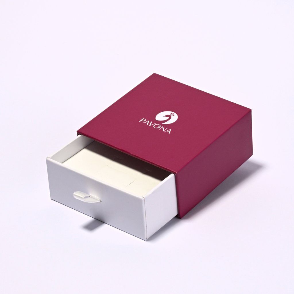 Krabička je vybavená praktickým vysúvacím šuplíkom s bielym pútkom, vďaka ktorému sa šperk ľahko a efektne odhalí. Vnútri ponúka bezpečné miesto na uloženie náušníc, prsteňa, prívesku alebo retiazky.