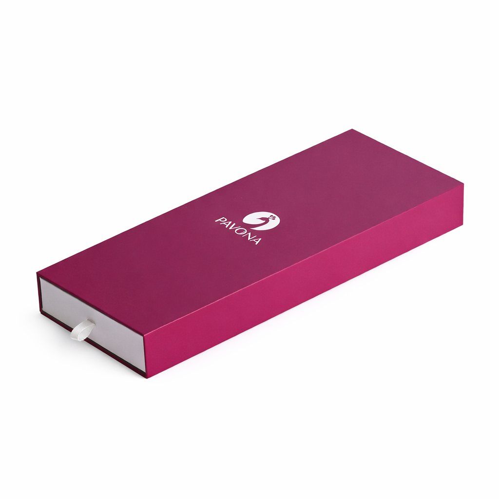 Štýlová darčeková krabička Pavona je ideálnym doplnkom na odovzdanie šperku ako výnimočného darčeka. Elegantné ružové prevedenie s logom Pavona pôsobí jemne a luxusne zároveň, takže krásne podčiarkne hodnotu ukrytého šperku.
