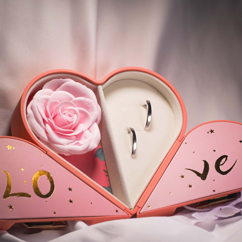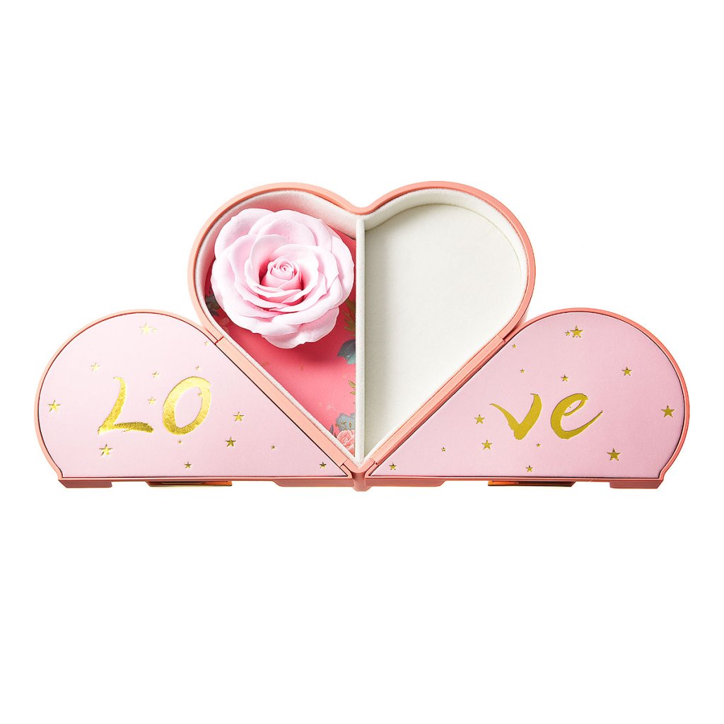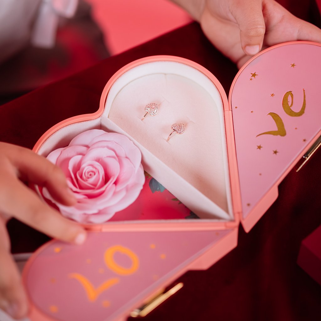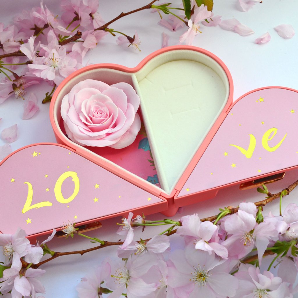 Vďaka svojmu dizajnu sa stane nielen krásnym obalom, ale aj spomienkovou šperkovnicou. Krabička vyzerá romanticky, čo ju robí ideálnou voľbou na darovanie k príležitostiam ako Valentín, výročie. Krabička obsahuje praktickú priehradku určenú na uloženie šperkov – napríklad náhrdelníka, prstienkov alebo náušníc. Vnútri krabičky sa nachádza nežná ružička, ktorá dodáva celému baleniu jedinečný a luxusný nádych.