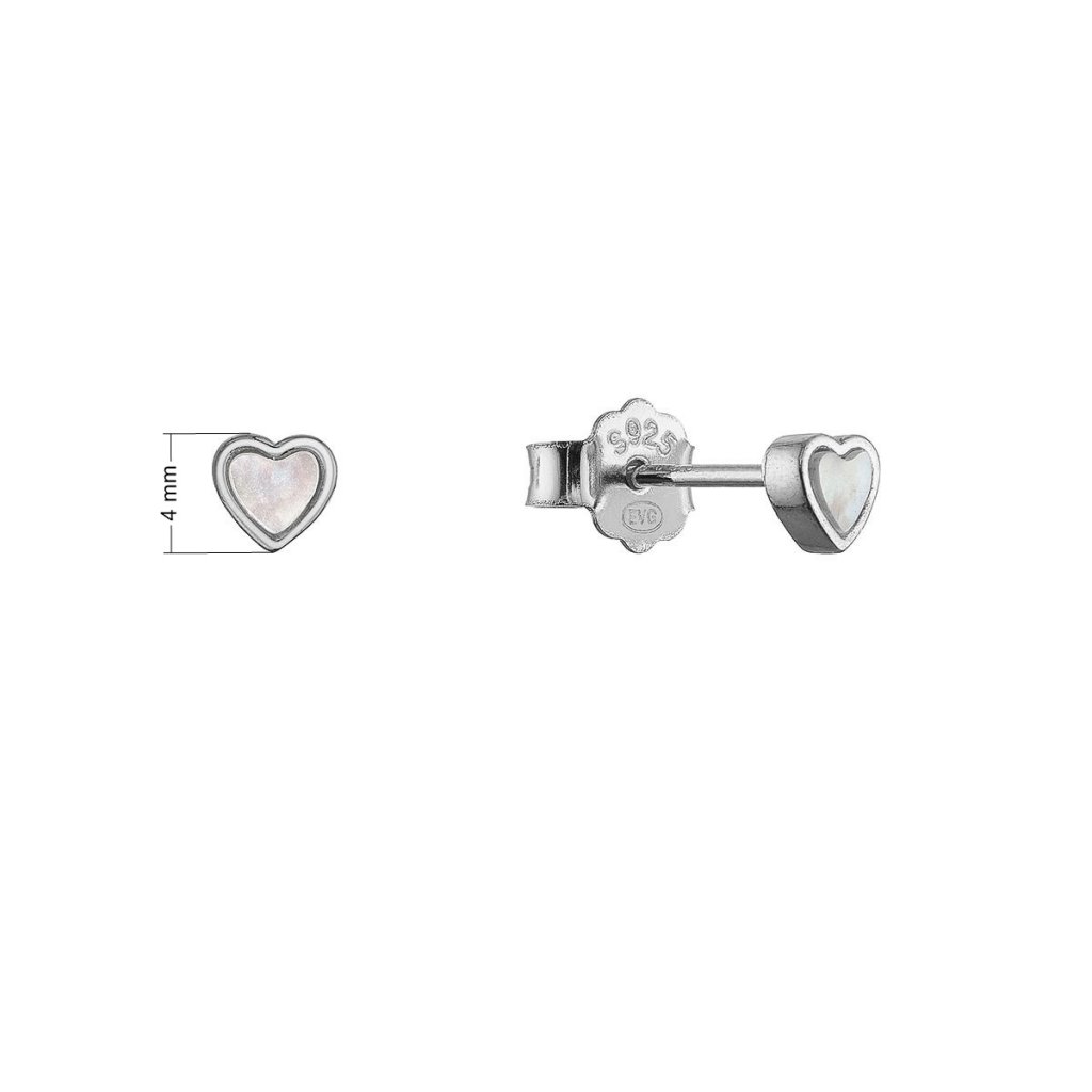 Drobné strieborné náušnice srdiečka s perleťou 11707.1