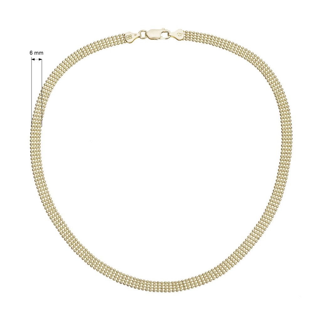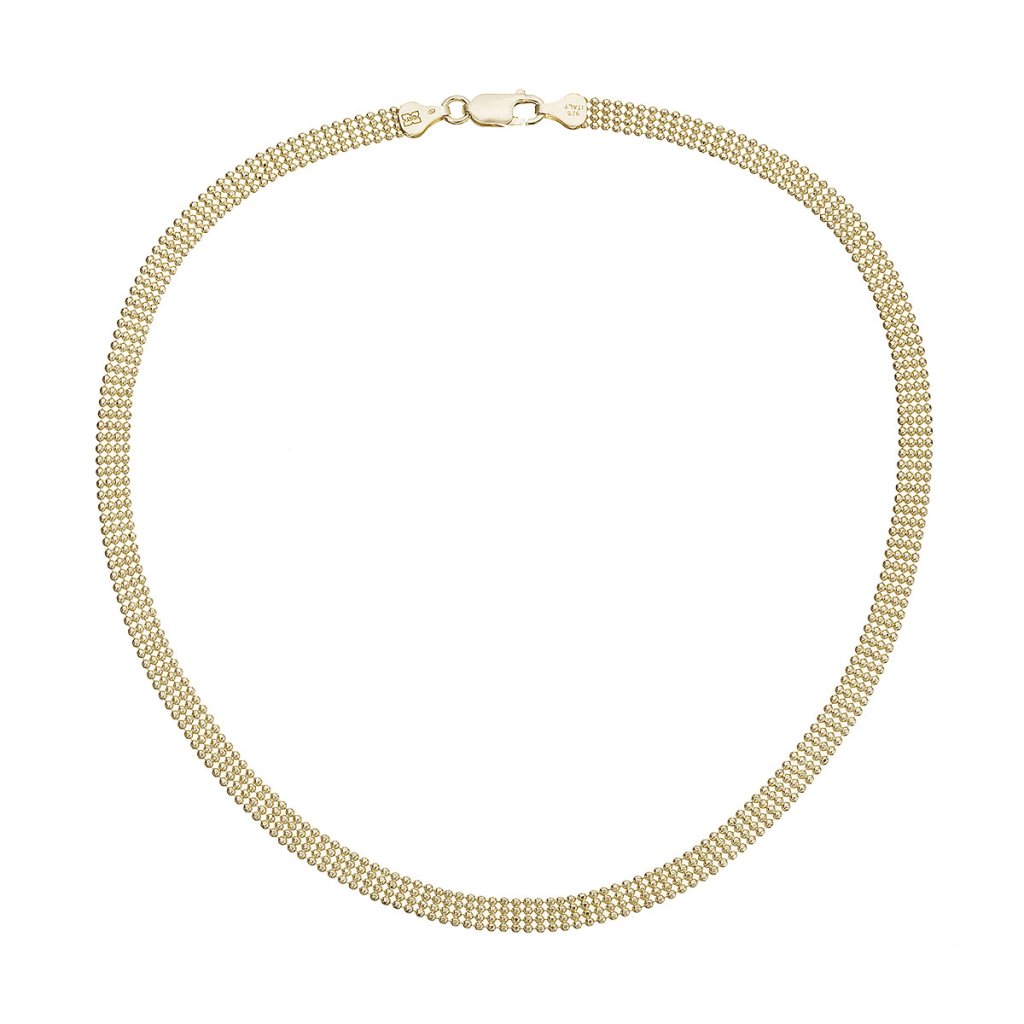 Elegantný jemný náhrdelník zložený zo štyroch radov drobných, dokonale symetrických guličiek pôsobí ako zhmotnená ľahkosť a pôvab. Plochý tvar z pozláteného striebra pôsobí nežným, ale napriek tomu výrazným dojmom, ktorý prirodzene podčiarkne vašu ženskosť.