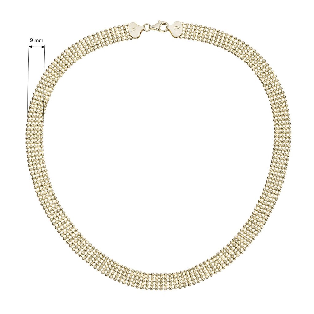 Náhrdelník z pozláteného striebra, kde sa päť hladkých línií drobných guličiek spojilo v jeden ucelený a elegantný celok . Vďaka pravidelnému usporiadaniu a decentnému lesku pôsobí jemne, ale zároveň pevne a výrazne.