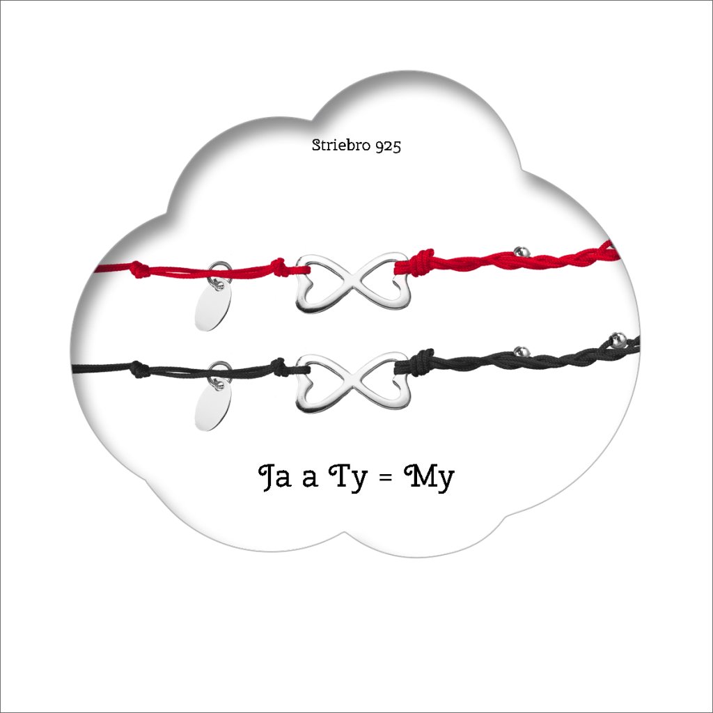 Náramky sú vyrobené z textilnej šnúrky so strieborným príveskom v tvare nekonečna s povrchovou úpravou ródiom, ktorá bráni sčernaniu, zožltnutiu a poškriabaniu šperku. Šperk neobsahuje nikel , a tak je vhodný pre citlivé osoby aj pre alergikov.