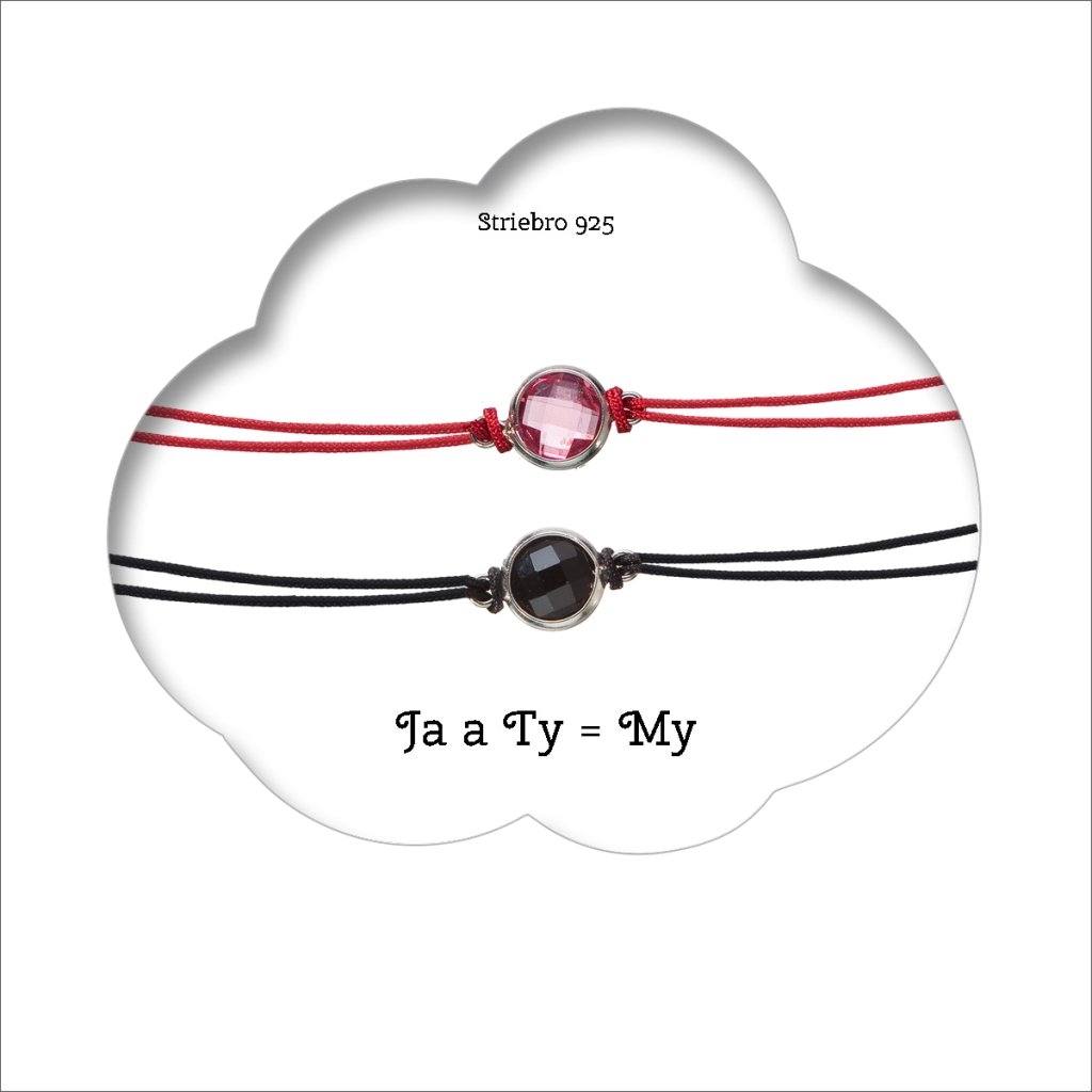 - Dva náramky: Jednoduché a štýlové náramky s nastaviteľnou šnúrkou – jeden na čiernej a druhý na červenej šnúrke.