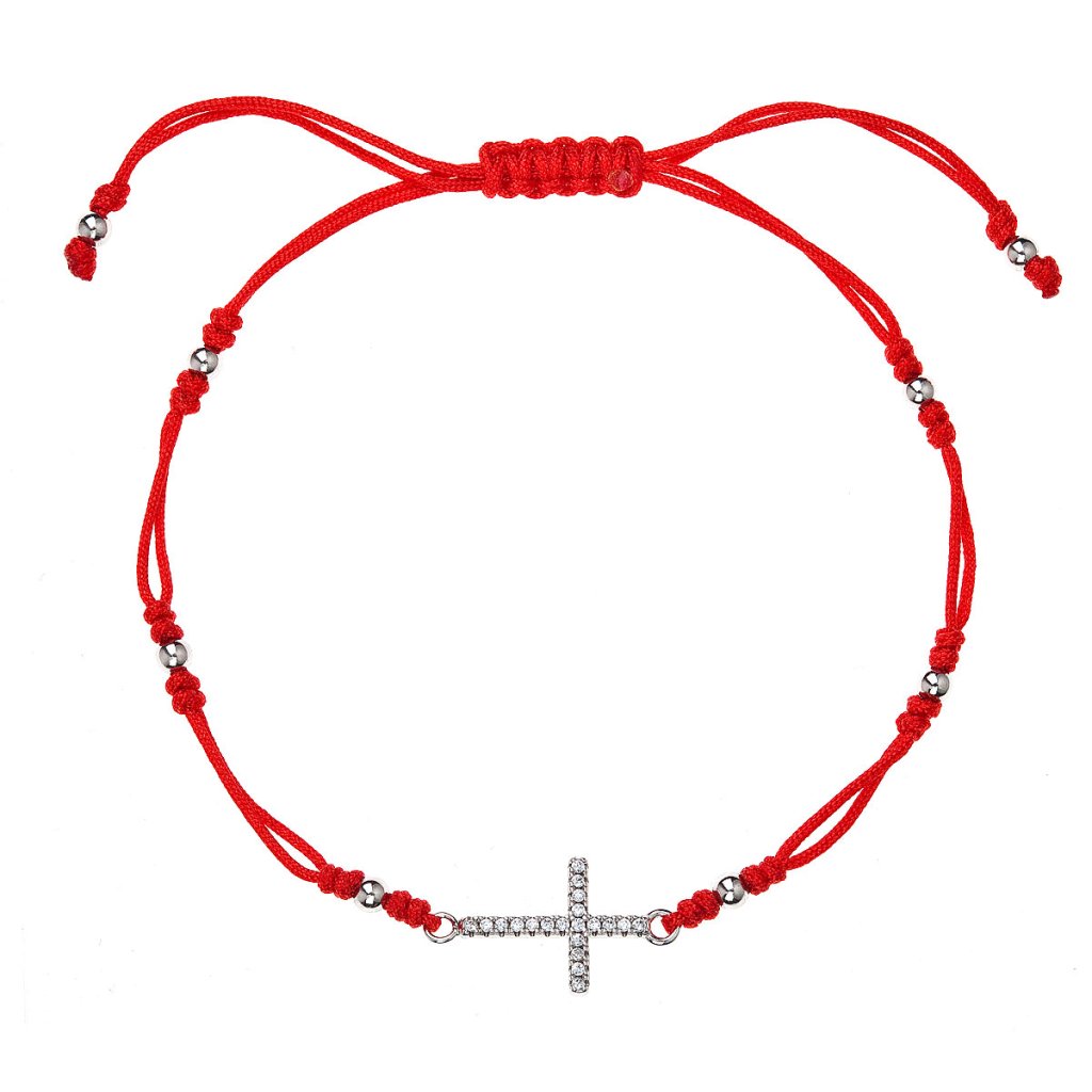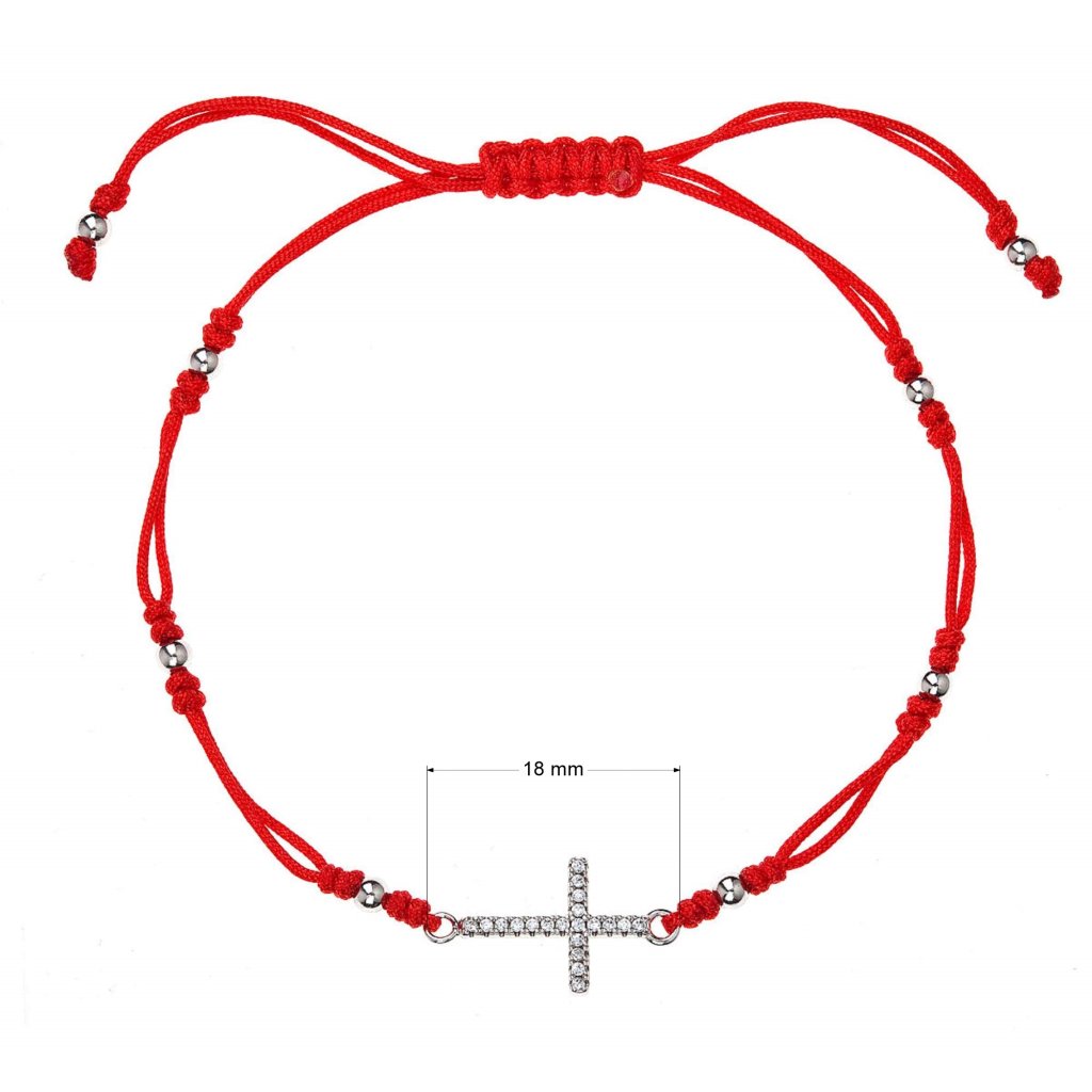 Kabbalah červený náramok strieborný krížik so zirkónmi 13022.3