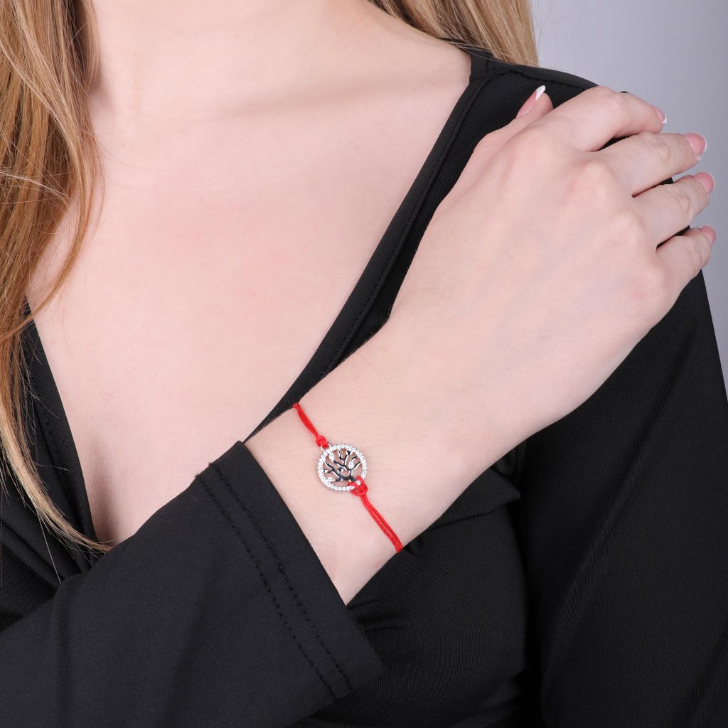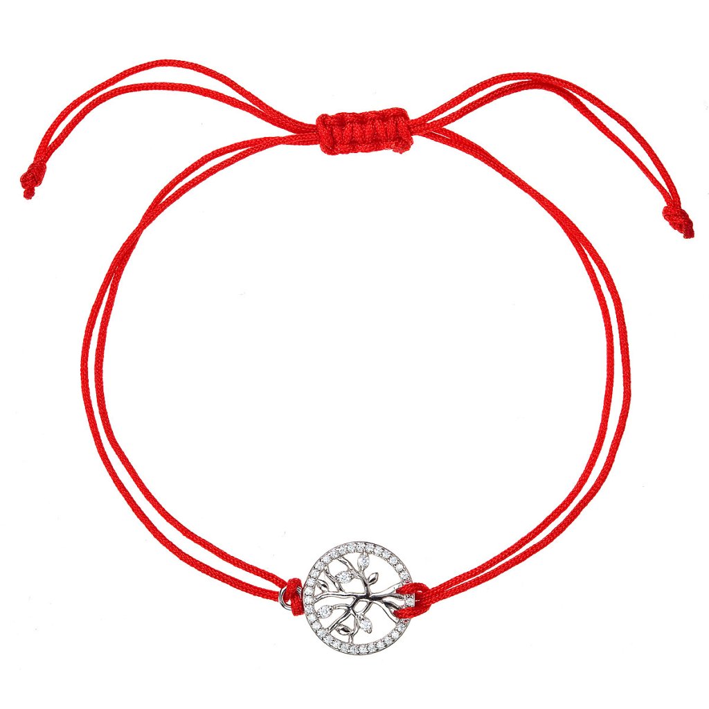 Kabbalah červený náramok strieborný strom života so zirkónmi 13021.3