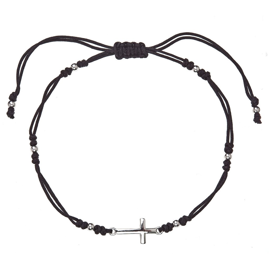 - jednoduchý čierny náramok s krížikom