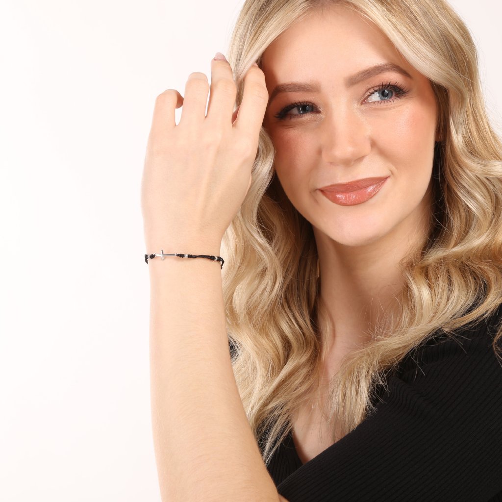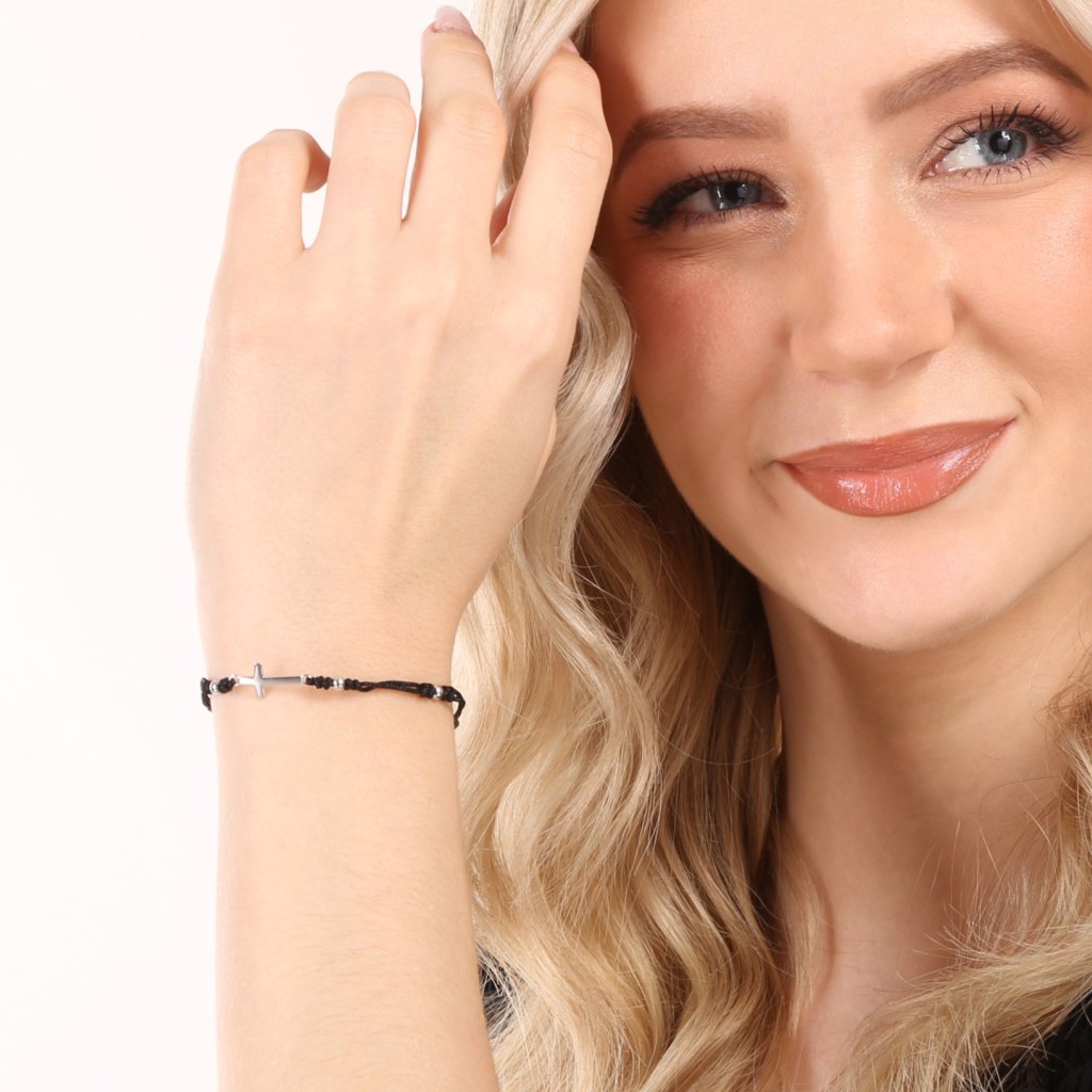 Kabbalah čierny náramok strieborný krížik 13023.3 black
