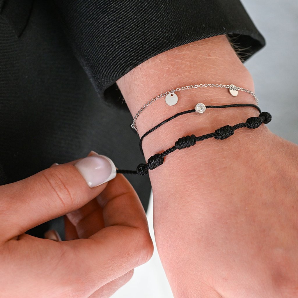Tajomný Kabbalah náramok 13091.3 v čiernej farbe je viac ako obyčajný šperk - je to duchovný ochranný talizman , ktorý spája starobylú mystickú tradíciu s moderným dizajnom. Jemne tkaný textilný náramok s uzlíkmi po obvode symbolizuje prepojenie duchovných energií a osobnej ochrany.