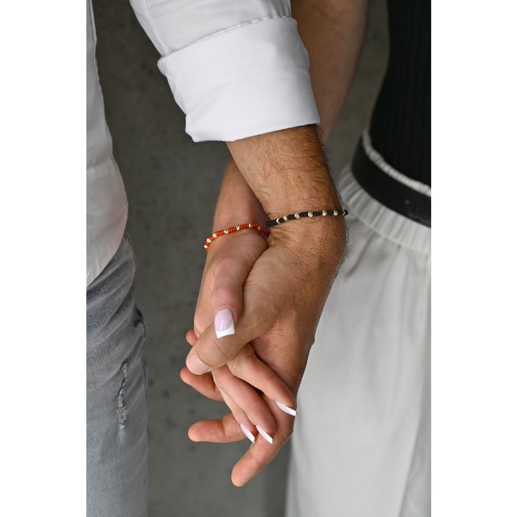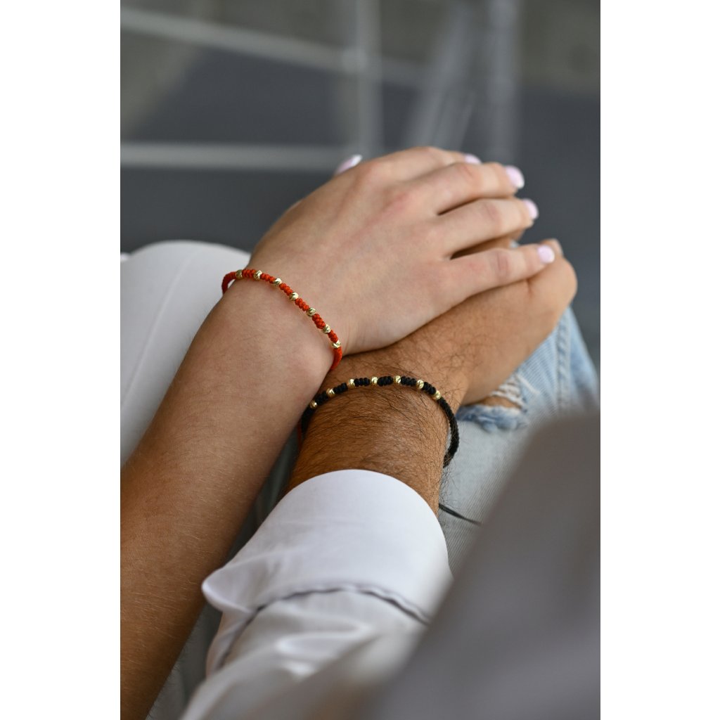 Tento Kabbalah náramok s čiernou šnúrkou a ozdobnými guličkami zo 14-karátového zlata ponúka elegantné spojenie ochrannej symboliky a luxusu. Čierna farba predstavuje silu a stabilitu, zatiaľ čo zlaté guličky dodávajú náramku nádych exkluzivity. Skvelý doplnok pre mužov aj ženy, ktorí chcú posilniť osobnú energiu a štýlovo vyjadriť svoju vieru v spiritualitu. Náramok "Kabbalah" 93T00102 čiernej farby je vhodným darčekom ako pre mužov, tak pre ženy.