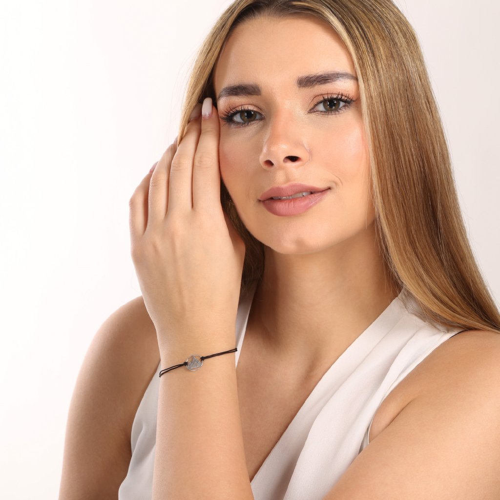 Dĺžka náramku 13078.3 sa reguluje posúvaním šnúrky v uzle, maximálna dĺžka je 25 cm. Strieborný krúžok s horami je vyrobený zo striebra 925/1000 a môžu ho bez problémov nosiť aj alergici, pretože neobsahuje prídavok niklu.