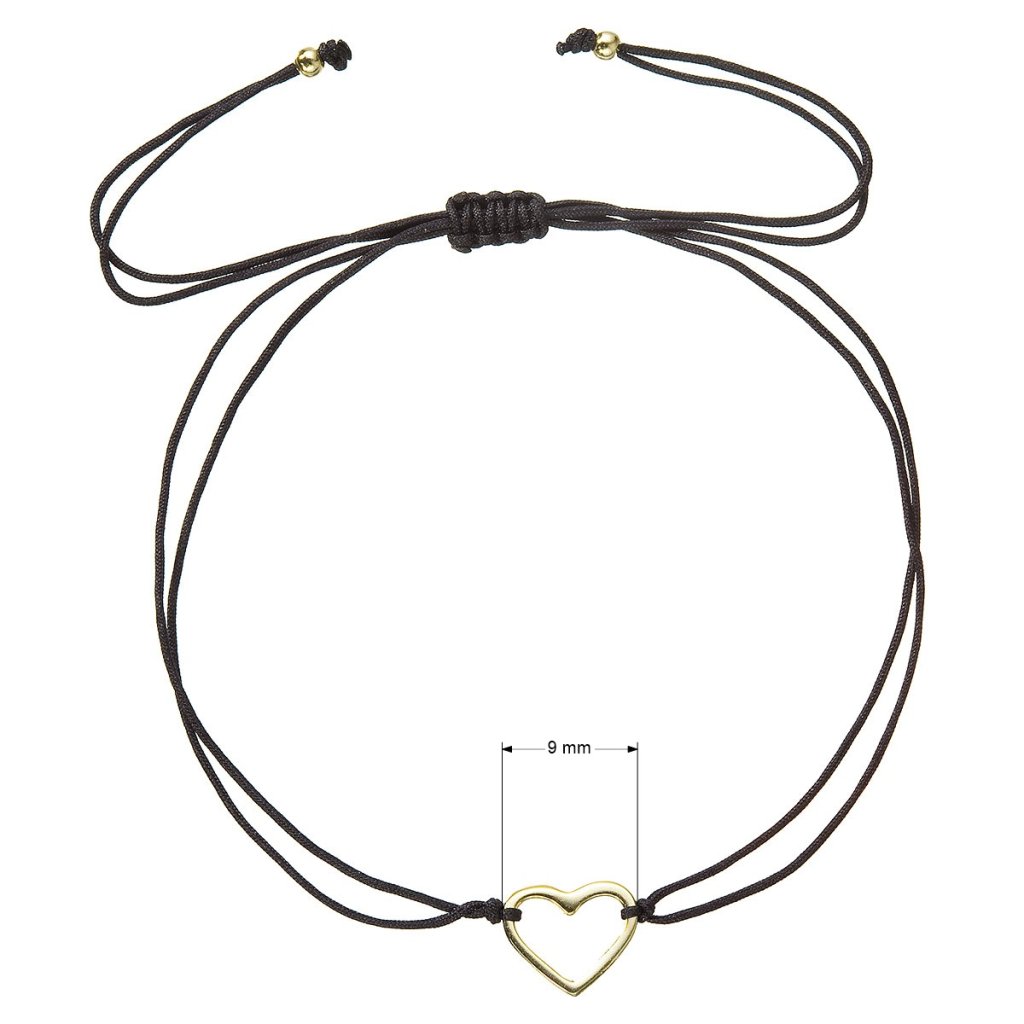 Dĺžka náramku 13043.3 sa reguluje posúvaním šnúrky v uzle, maximálne 25 cm. Pozlátené strieborné srdiečko je vyrobené zo striebra 925/1000 a môžu ho bez problémov nosiť aj alergici.