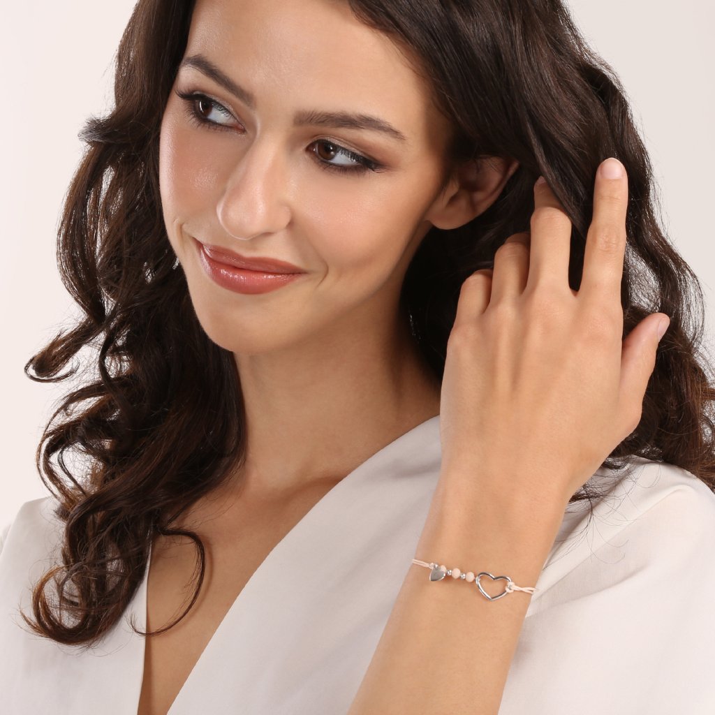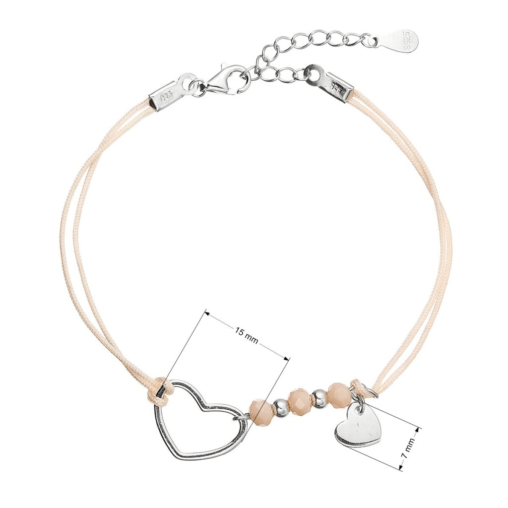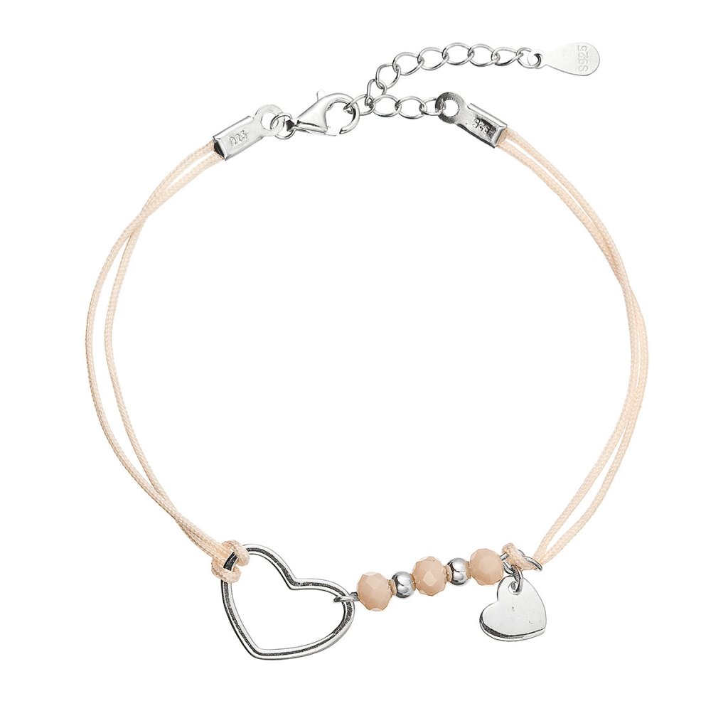 Svetlooranžová šnúrka symbolizuje energiu, radosť a kreativitu , čo prináša pozitívne vibrácie do každodenného života. Strieborné srdiečka na náramku predstavujú lásku, harmóniu a ochranu, zatiaľ čo strieborné korálky dodávajú šperku elegantný lesk a rafinovanosť. Srdiečka a guličky sú vyrobené z rhodiovaného striebra 925/1000 a navyše náramok zdobia fazetované korálky vo svetlo oranžovej farbe.