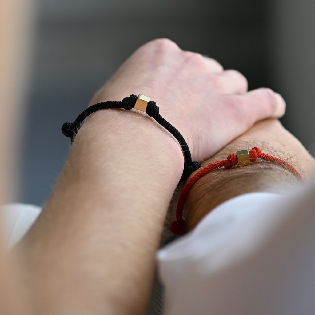 Štýlový elegantný unisex šnúrkový náramok v červenej farbe s jemným nádychom luxusu zdobí lesklá kocka zo 14-karátového zlata o veľkosti 6x6 mm. Zlatý detail dodáva náramku nadčasový šarm, zatiaľ čo červená šnúrka prináša pozitívnu energiu a ochranu. Perfektná voľba na každodenné nosenie aj ako štýlový doplnok na výnimočné príležitosti. Možno ho ľahko kombinovať aj vrstviť. Náramok "Kabbalah" 93T00100 červenej farby symbolizuje životnú energiu a nekončiaci život a je vhodným darčekom ako pre mužov, tak pre ženy.