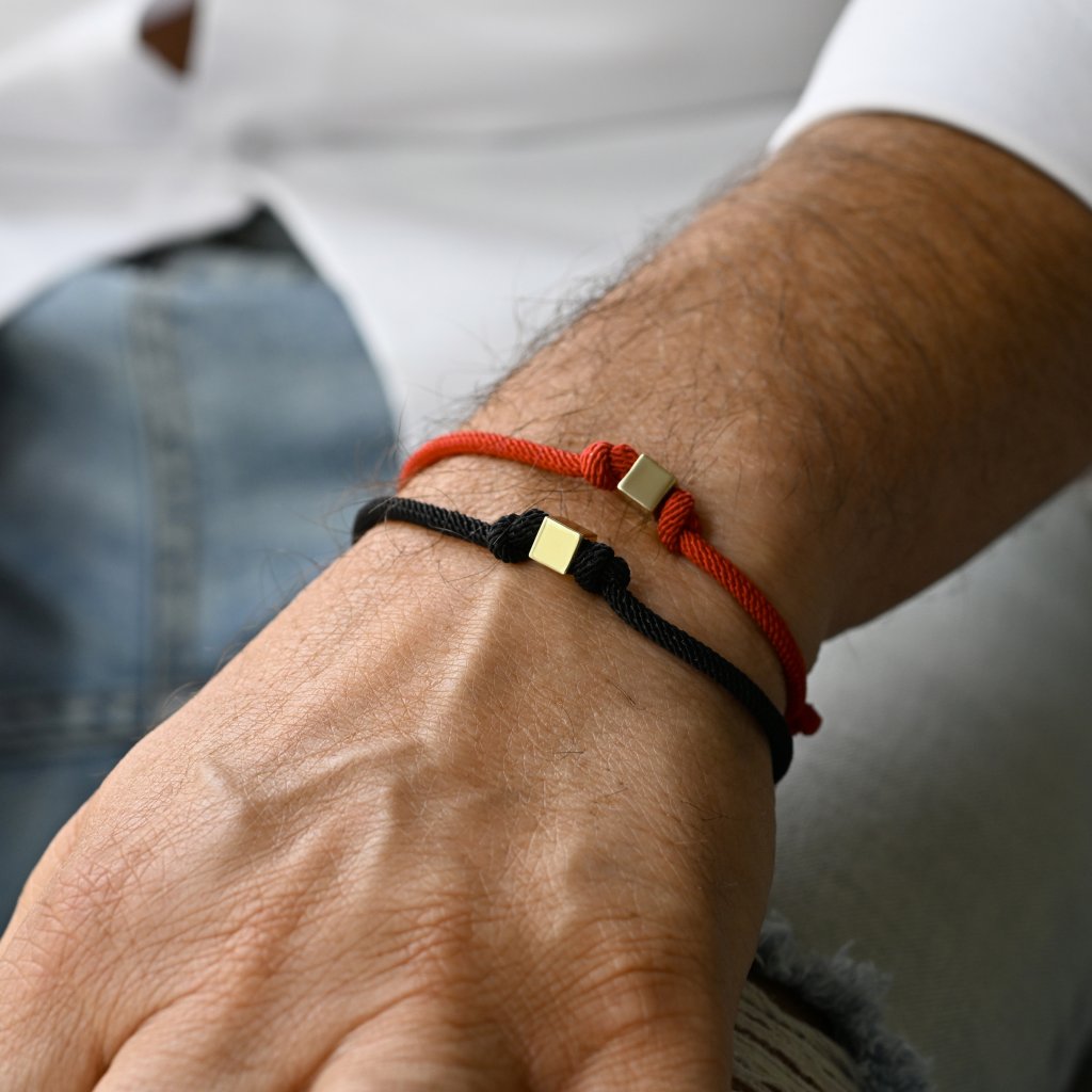Štýlový elegantný unisex šnúrkový náramok v čiernej farbe s jemným nádychom luxusu zdobí lesklá kocka zo 14-karátového zlata o veľkosti 6x6 mm. Zlatý detail dodáva náramku nadčasový šarm. Perfektná voľba na každodenné nosenie aj ako štýlový doplnok na výnimočné príležitosti. Možno ho ľahko kombinovať aj vrstviť. Náramok "Kabbalah" 93T00100 čiernej farby symbolizuje životnú energiu a nekončiaci život a je vhodným darčekom ako pre mužov, tak pre ženy.