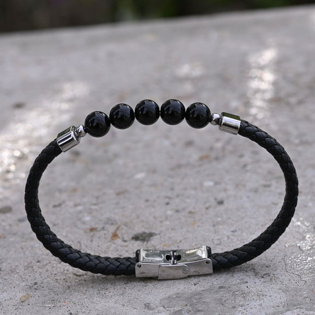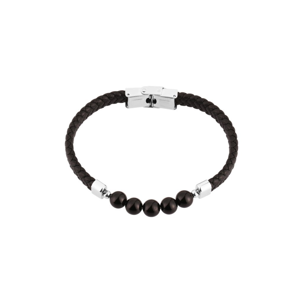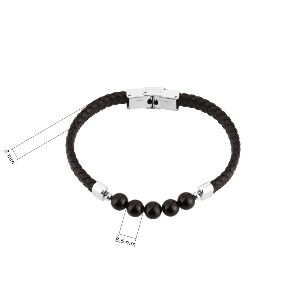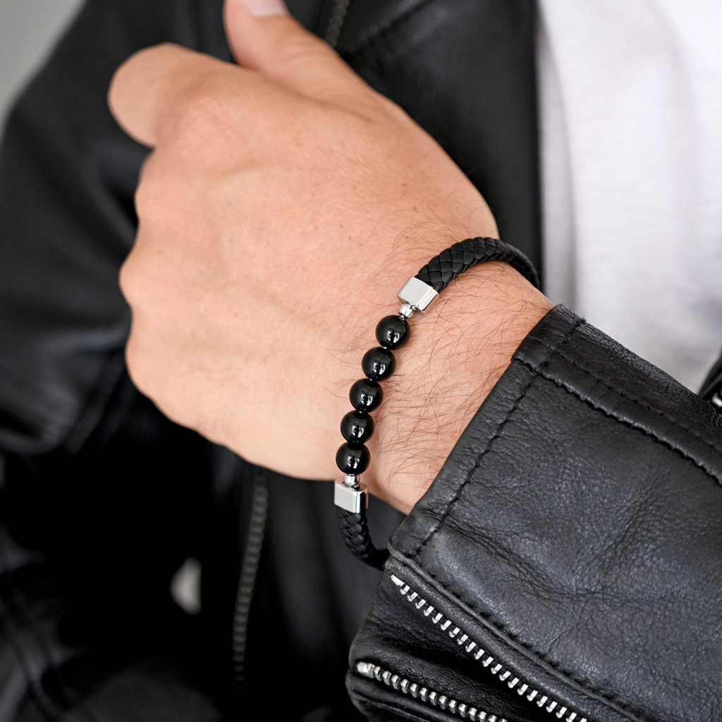 Kožený pánsky náramok 43086.3 čierny achát 22 cm
