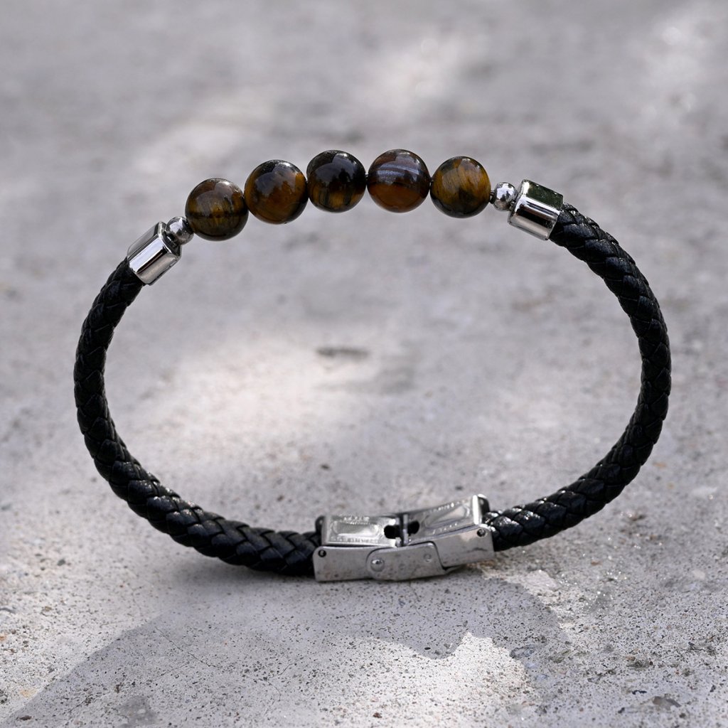 Kožený pánsky náramok 43086.3 tigrie oko 21 cm
