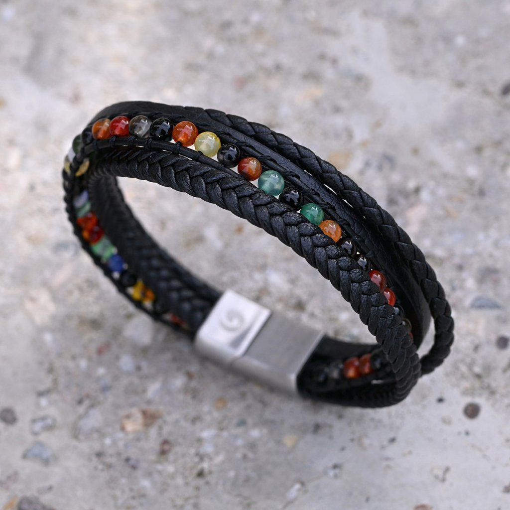 Kožený pánsky náramok s farebnými korálkami 43087.3 21 cm