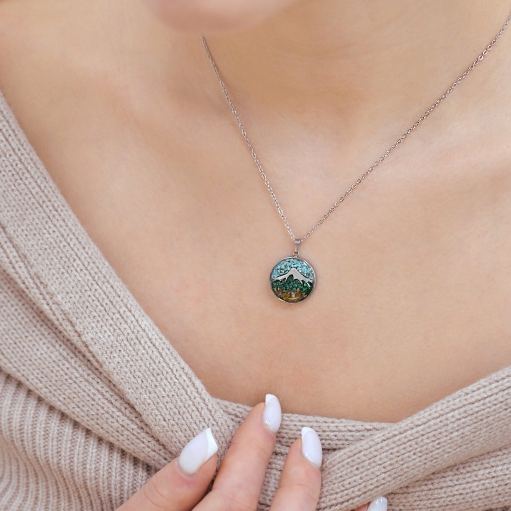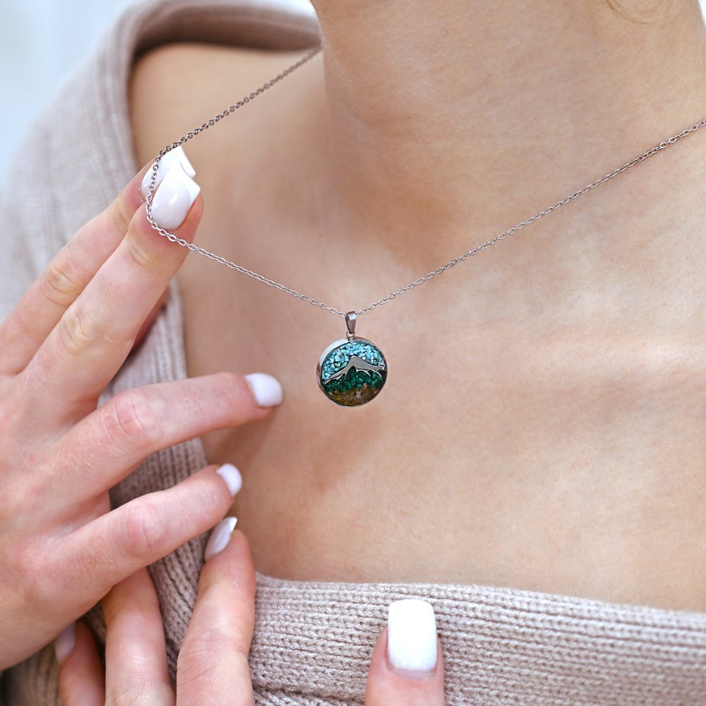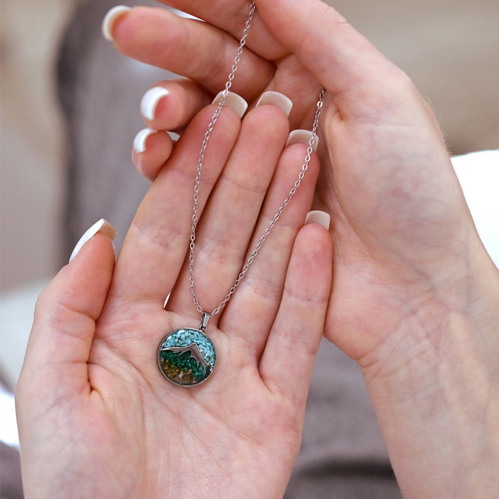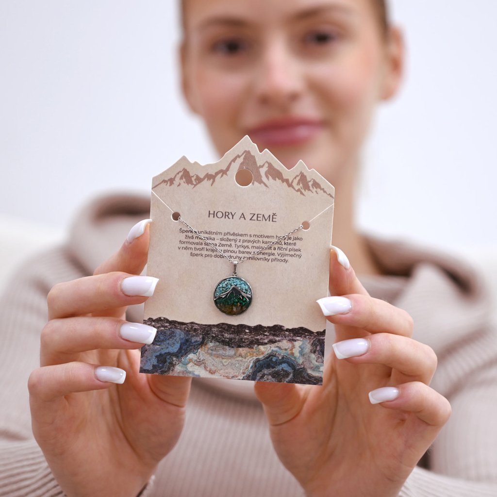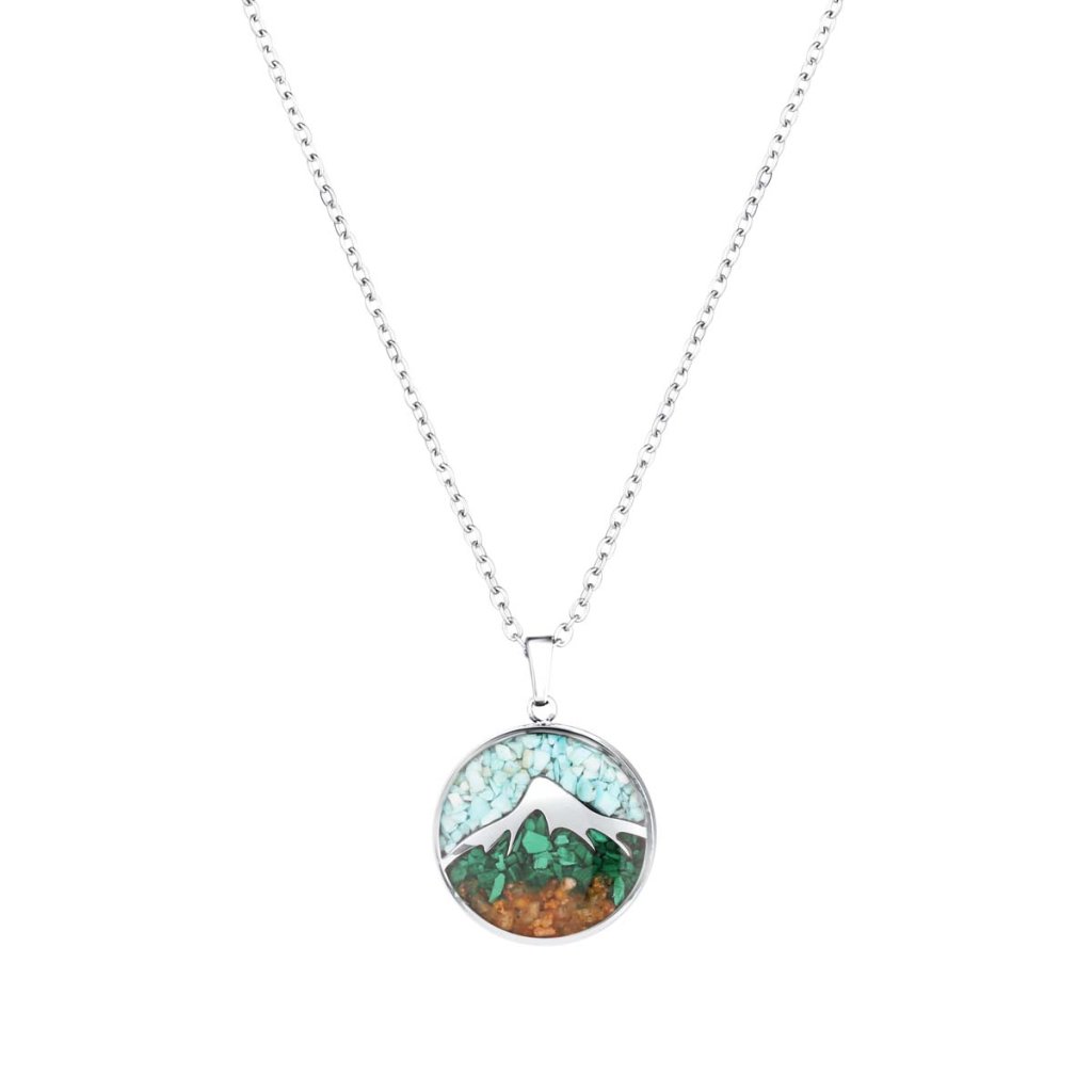 Náhrdelník hory s tyrkysom a malachitom 42040.3 oceľ