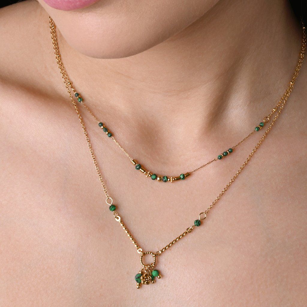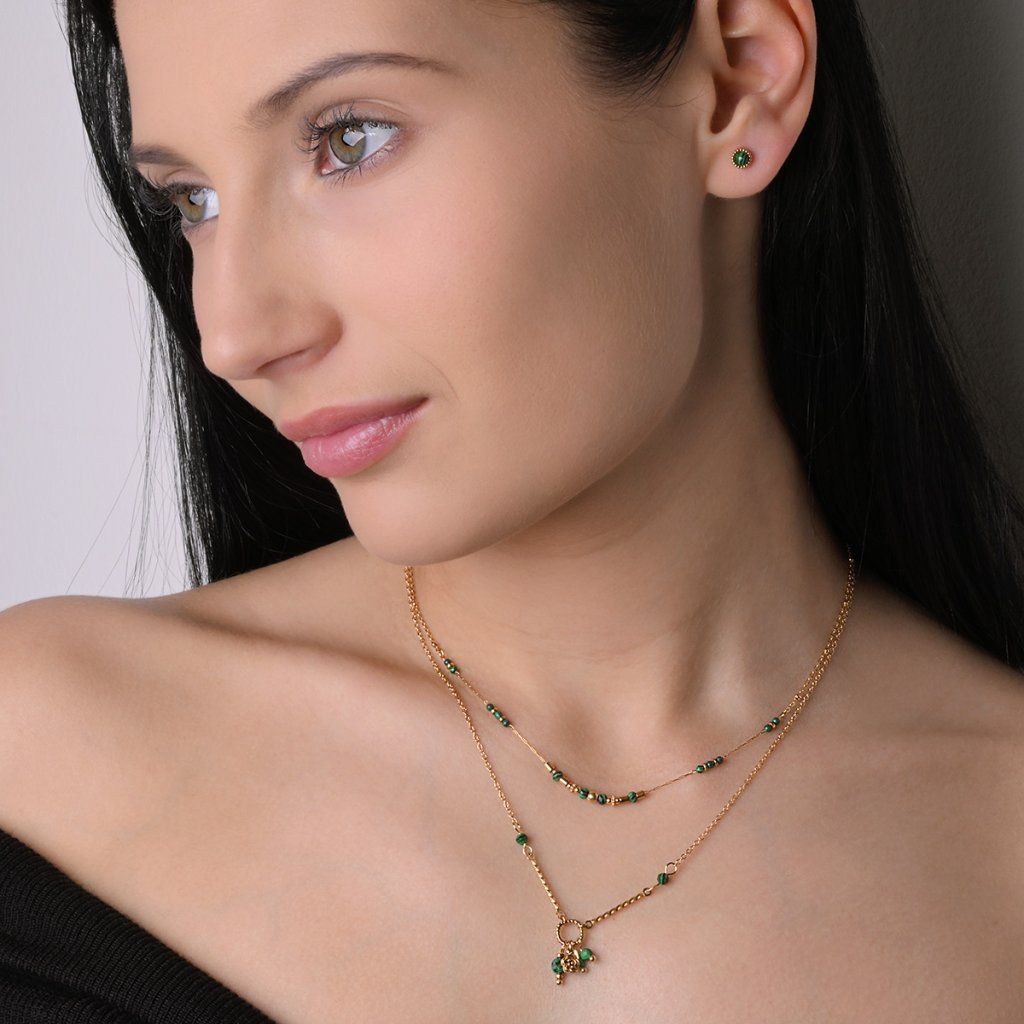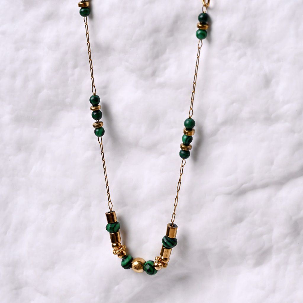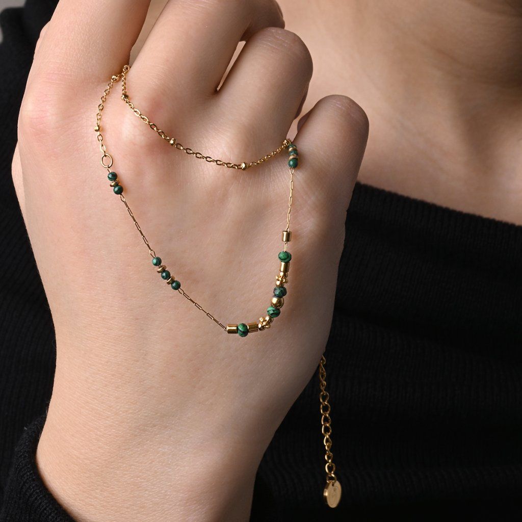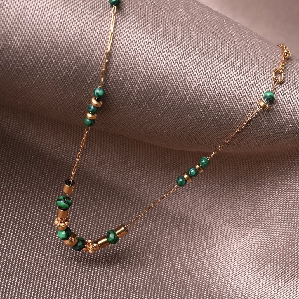 Náhrdelník oceľový s africkým malachitom 42031.3