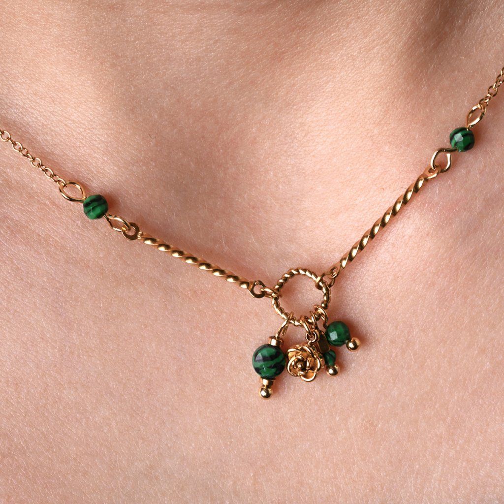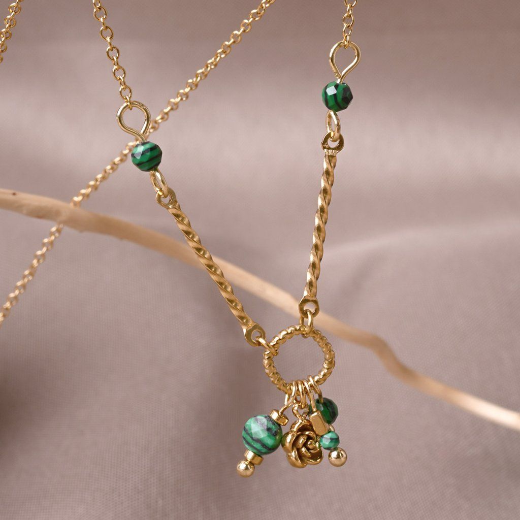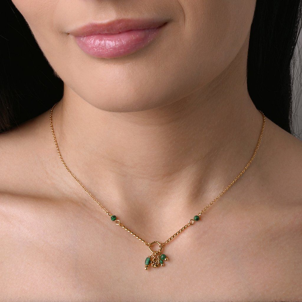 Náhrdelník oceľový s africkým malachitom 42032.3