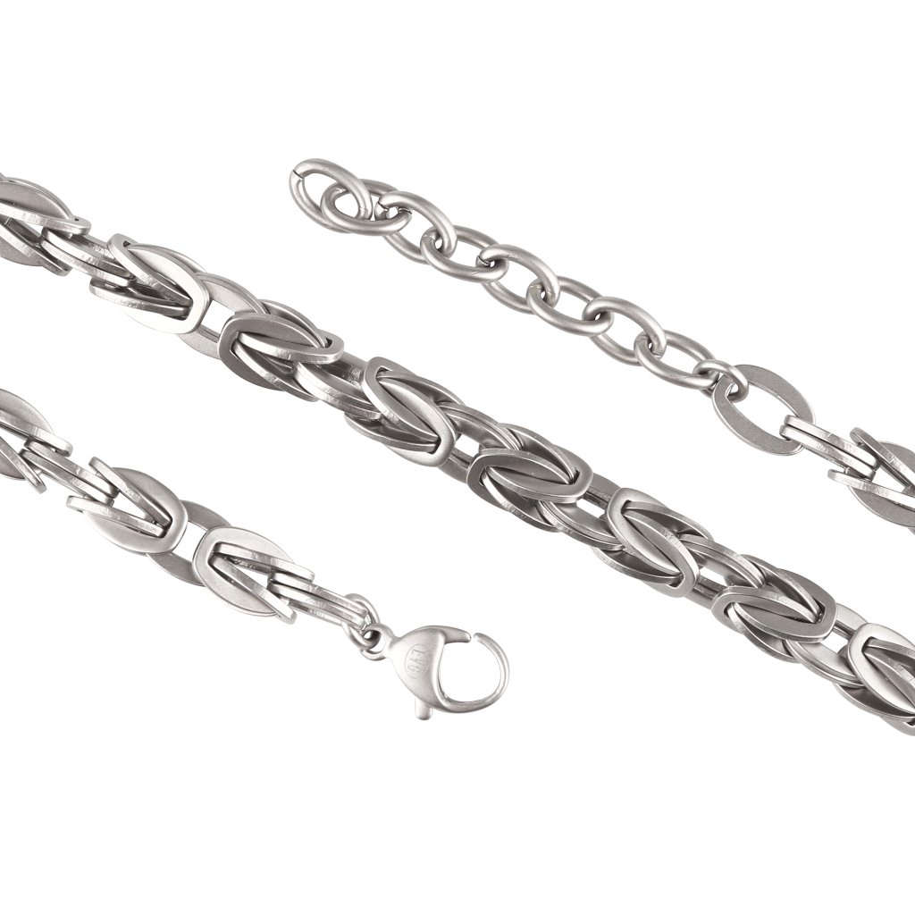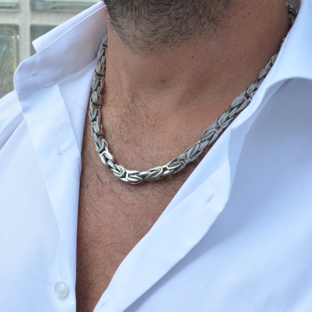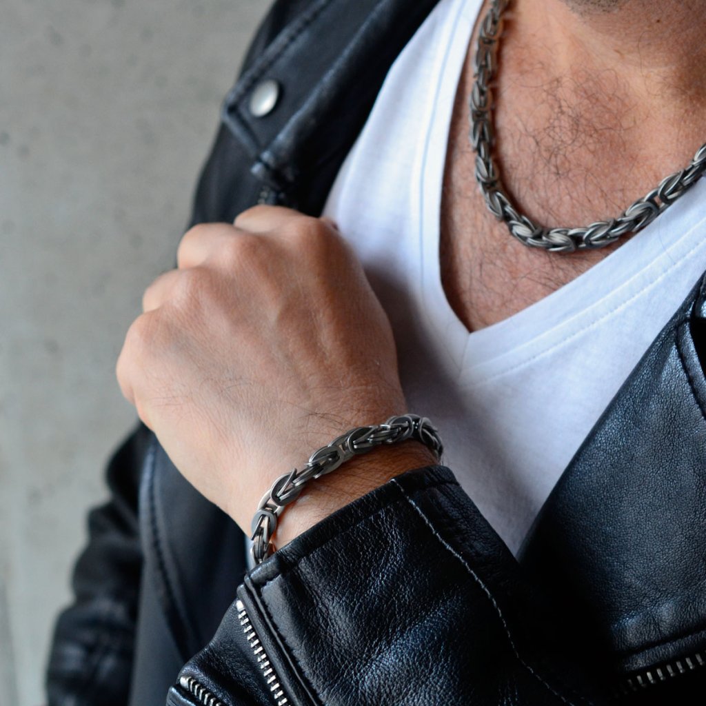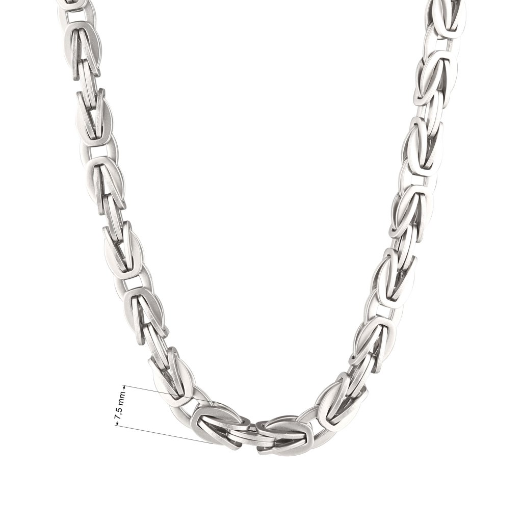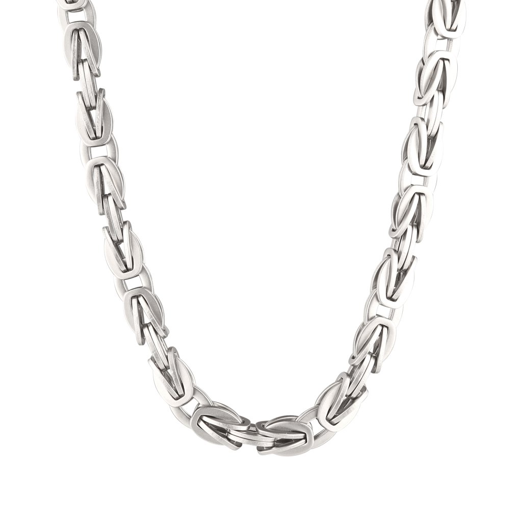 Masívny pánsky náhrdelník z pieskovanej ocele, ktorý zaujme svojim robustným a moderným designom. Originálne do seba zapadajúce oká vytvárajú atraktívnu textúru a zaisťujú pevnosť aj pohodlie pri nosení. Povrchová úprava pieskovaním dodáva náramku matný a štýlový vzhľad, ideálny pre mužov, ktorí hľadajú výrazný doplnok. Nastaviteľná dĺžka 50+5 cm umožňuje prispôsobenie pre perfektné padnutie. Skvelá voľba pre milovníkov kvalitných a elegantných šperkov.