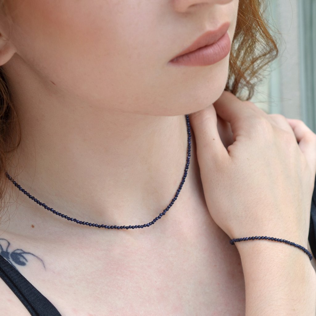 Predstavte si náhrdelník, ktorý nie je len krásny, ale má aj svoj príbeh. Drobné fazetované blue sandstone korálky sa trblietajú ako hviezdy na nočnej oblohe a vytvárajú pôsobivú harmóniu, ktorá priťahuje pohľady. Tento výnimočný šperk nie je len módnym doplnkom - blue sandstone, známy aj ako hviezdny kameň , je symbolom ambícií a odvážnych snov. Je to ako nosiť kúsok hviezdnej oblohy a pripomínať si, že aj vaše sny môžu dosiahnuť až ku hviezdam. Každá korálka vo farbe blue sandstone je vytvorená s precíznosťou, ktorá dáva vyniknúť jeho charakteristickému lesku pripomínajúcemu mihotanie hviezd. Spoľahlivé oceľové zapínanie ochráni váš šperk pred nechcenou stratou.