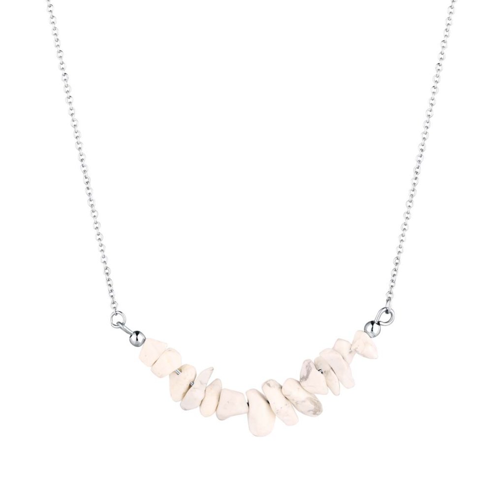 Náhrdelník s kameňom biely howlit 42037.1 oceľ