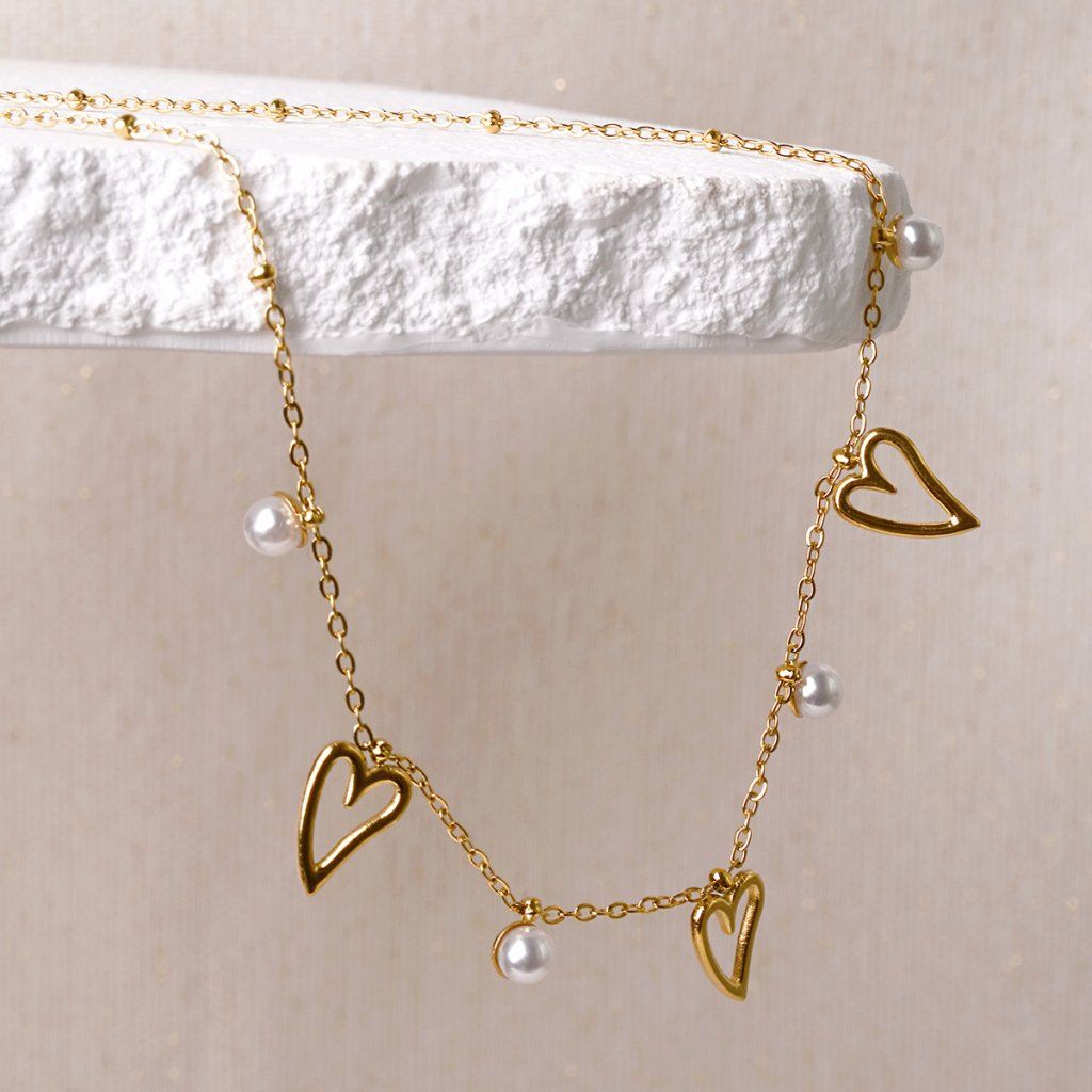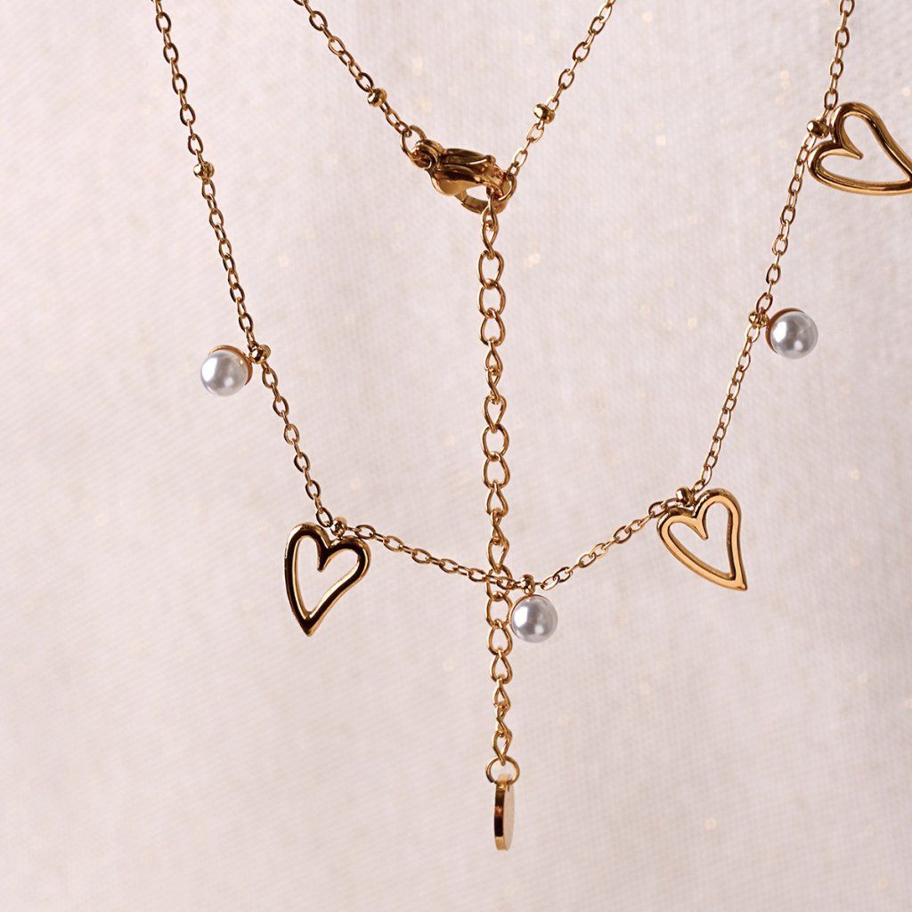 Náhrdelník s perličkami a srdiečkami 42025.1