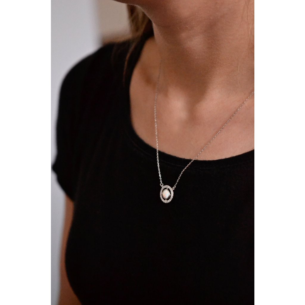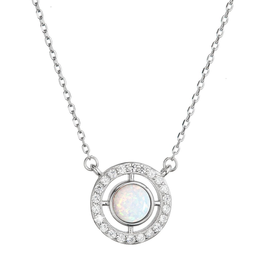 Náhrdelník so syntetickým bielym opálom a zirkónmi okrúhly 12066.1 white