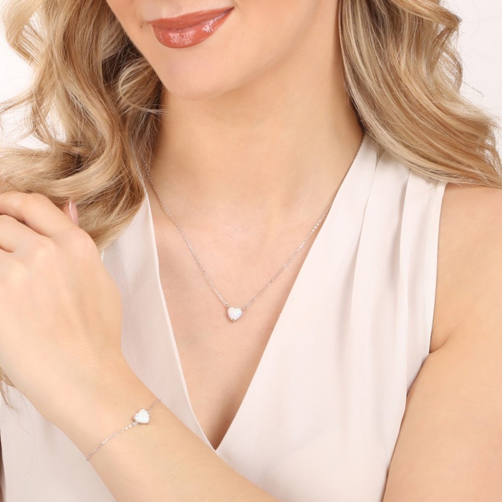 Srdce z bieleho syntetického opálu je precízne zasadené do lôžka z kvalitného striebra, čím vytvára harmonický celok plný lesku a jemnosti. Opál má charakteristickú dúhovú hru farieb , ktorá mení svoj nádych podľa uhla pohľadu – zakaždým vás tak prekvapí novým a neopakovateľným vzhľadom. Vďaka starostlivo vybranému materiálu bez niklu je náhrdelník šetrný k vašej pokožke.