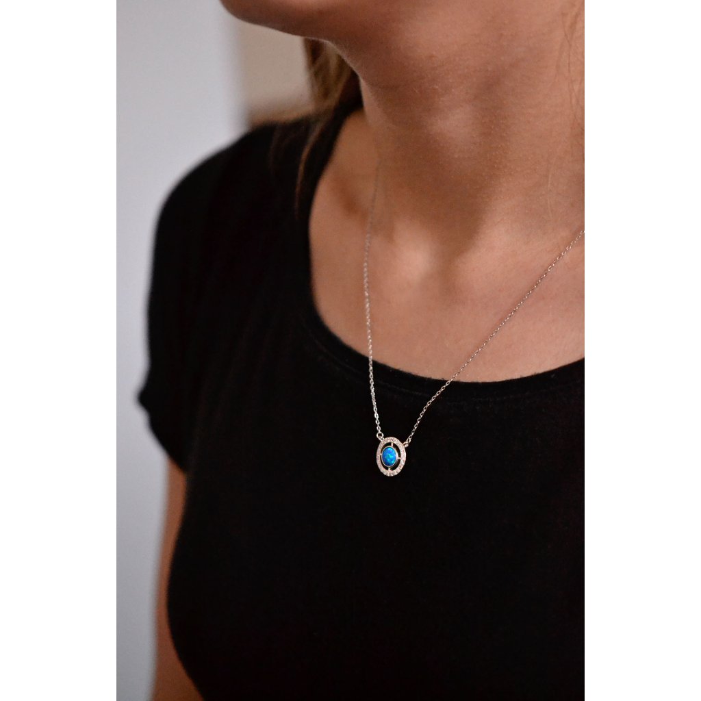 Náhrdelník so syntetickým modrým opálom a bielymi zirkónmi okrúhly 12066.3 blue
