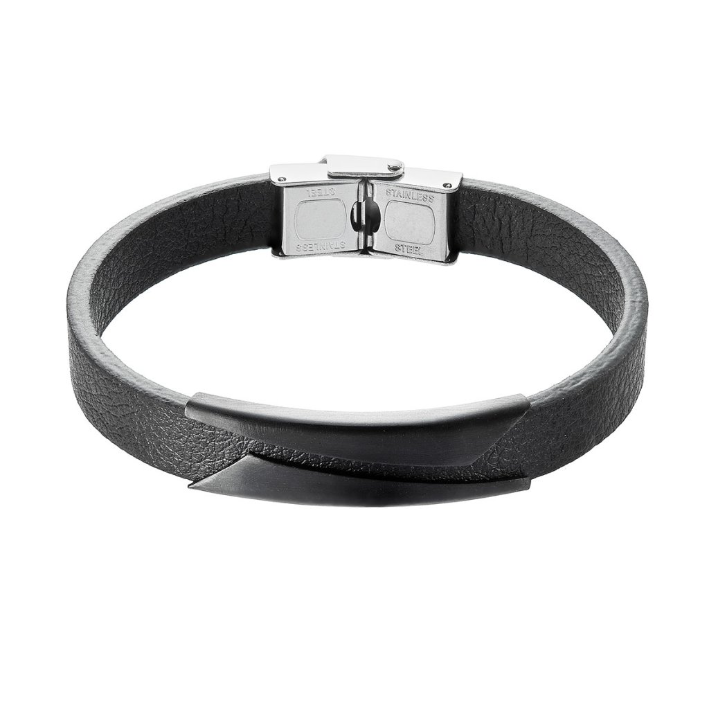 Náramok pánsky čierna koženka s oceľovou ozdobou 43031.3 čierny