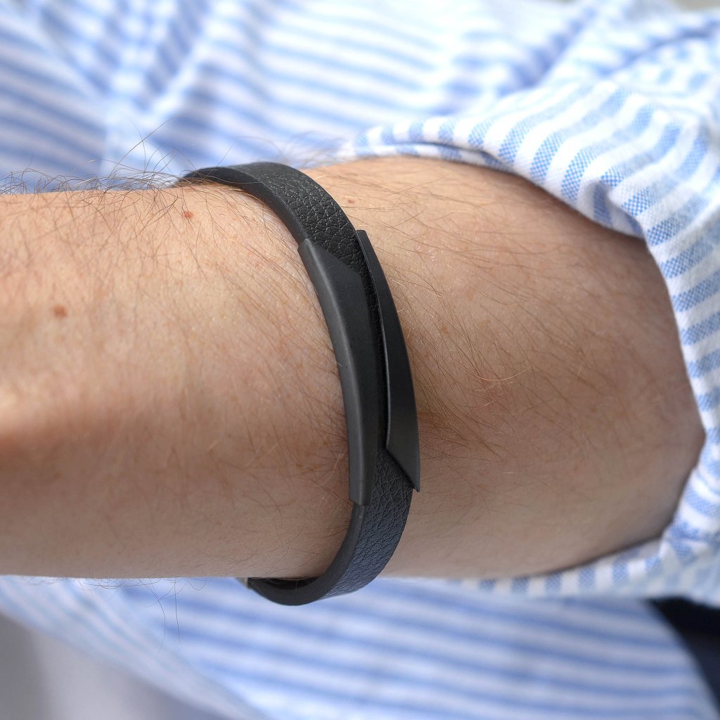 Zaujímavý pánsky náramok pre moderných mužov! Podčiarknite svoj vzhľad originálnym pánskym náramkom. Náramok je vyrobený z čiernej koženky s oceľovou ozdobou čiernej farby a vkusne doplní Váš outfit.Zapínanie je oceľové strieborné farby. Dĺžka náramku je 21 cm. Šperk neobsahuje nikel, a tak sa nemusíte obávať žiadne alergické reakcie.