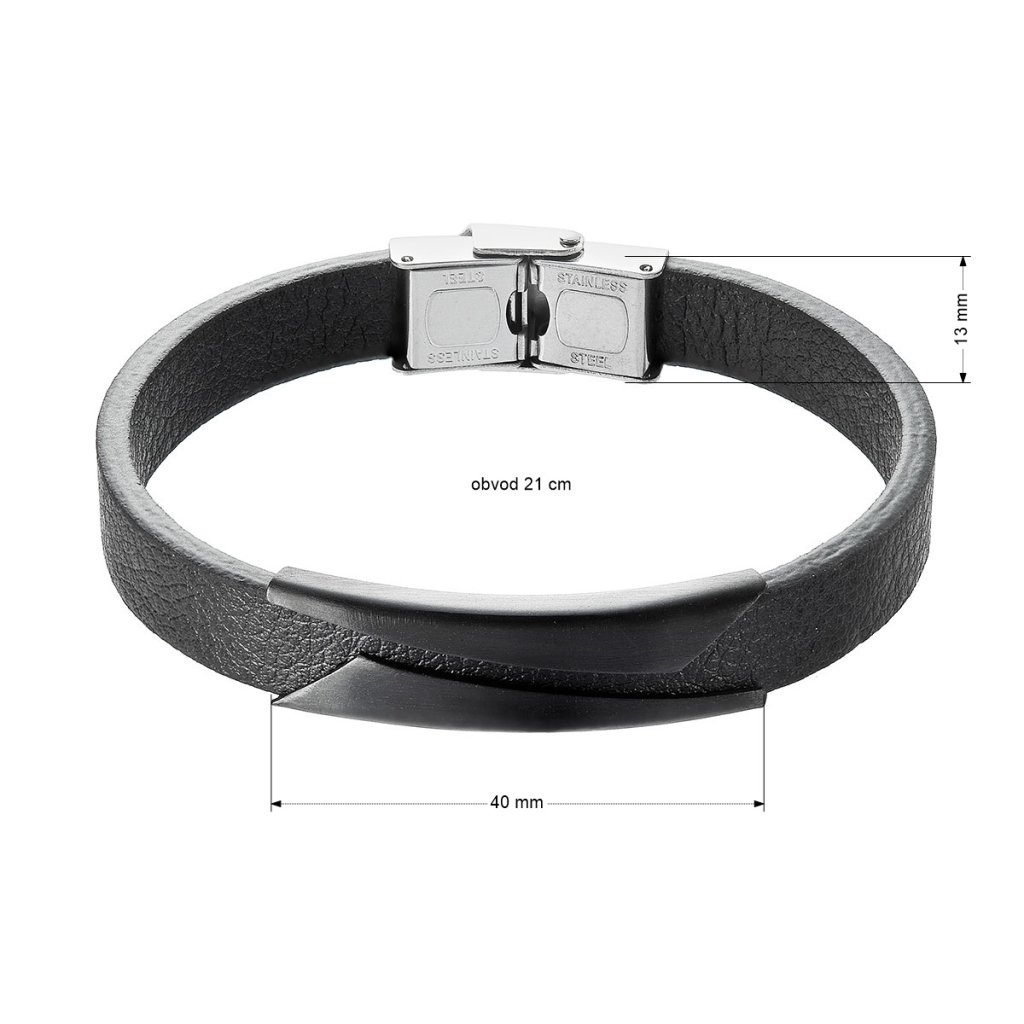 Parametre pánskeho náramku čierna koženka s oceľovou ozdobou 43031.3 čierny