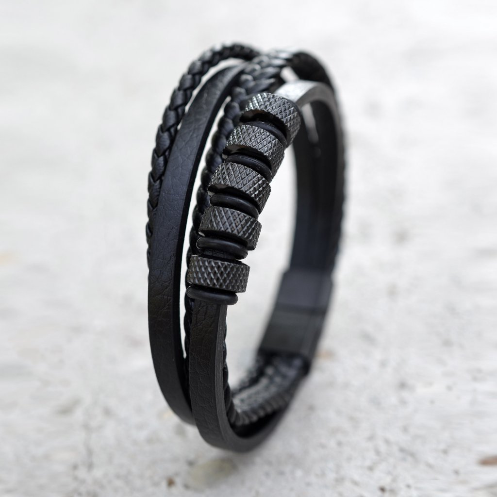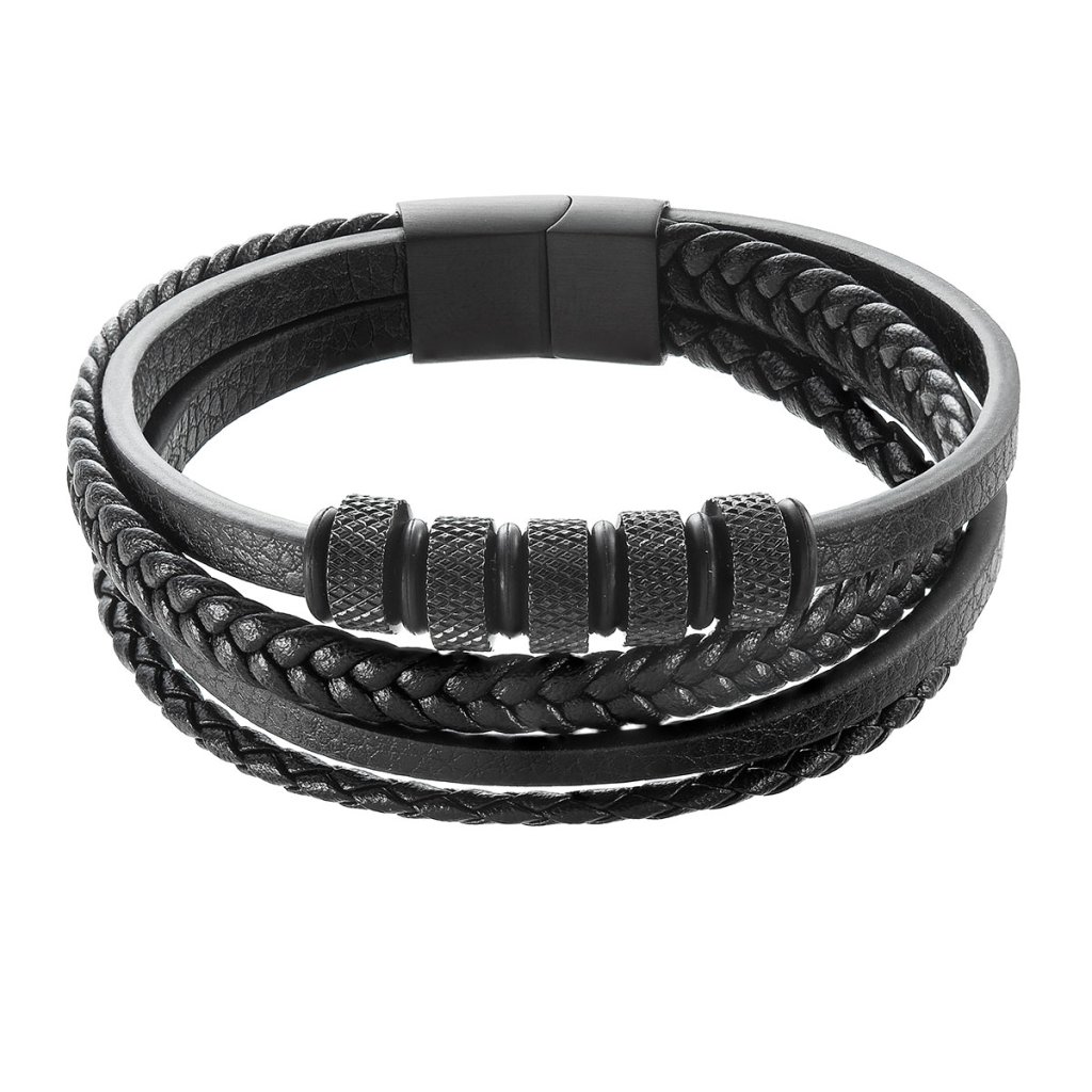 Náramok pánsky s koženkovými pásikmi 43036.3 čierny