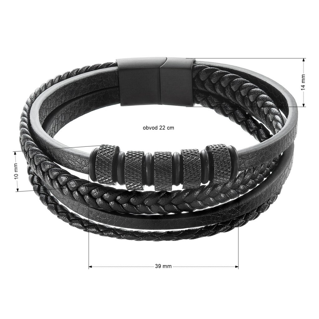 Parametre pánskeho náramku s koženkovými pásikmi 43036.3 čierny