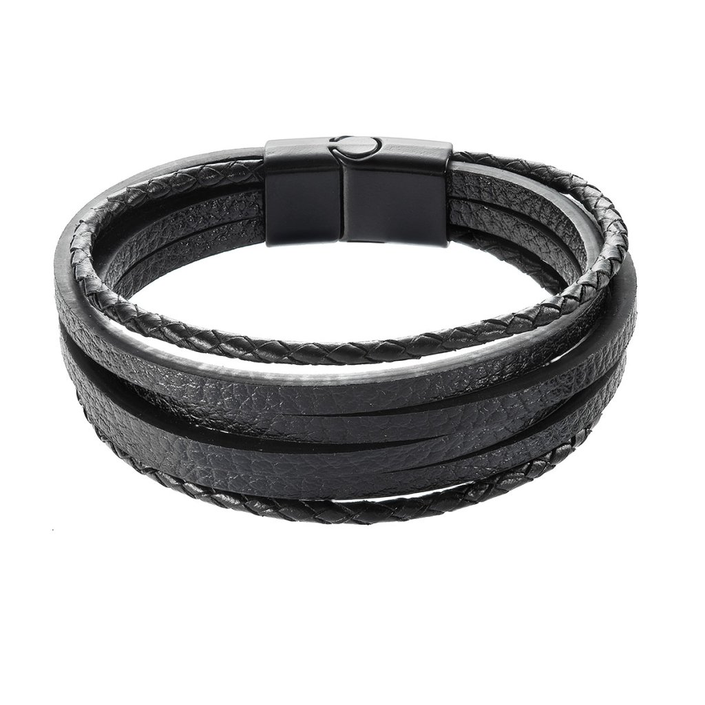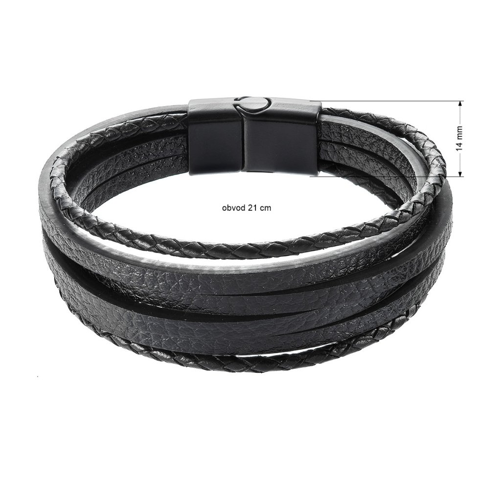 Náramok pánsky s koženkovými pásikmi 43037.3 čierny