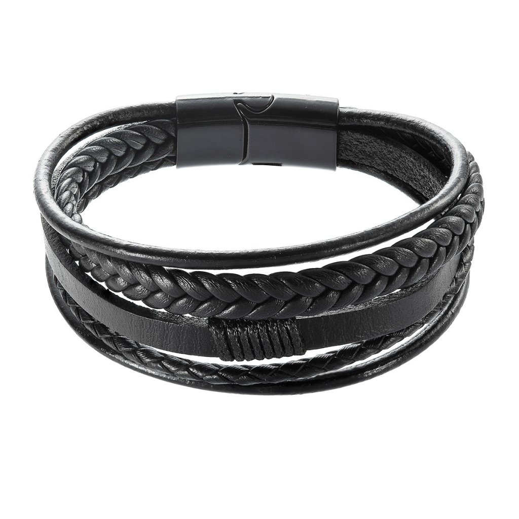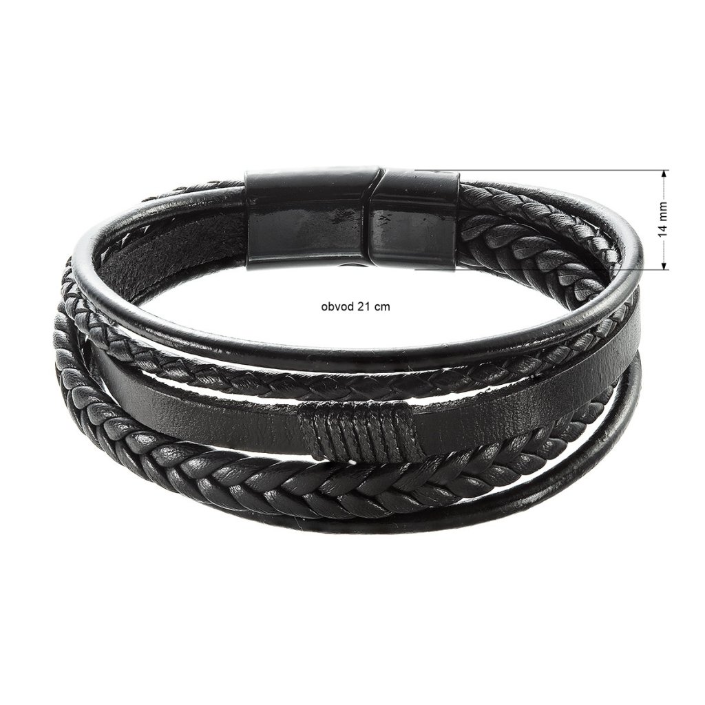 Náramok pánsky s koženkovými pásikmi a sponou na magnet 43023.3 čierny