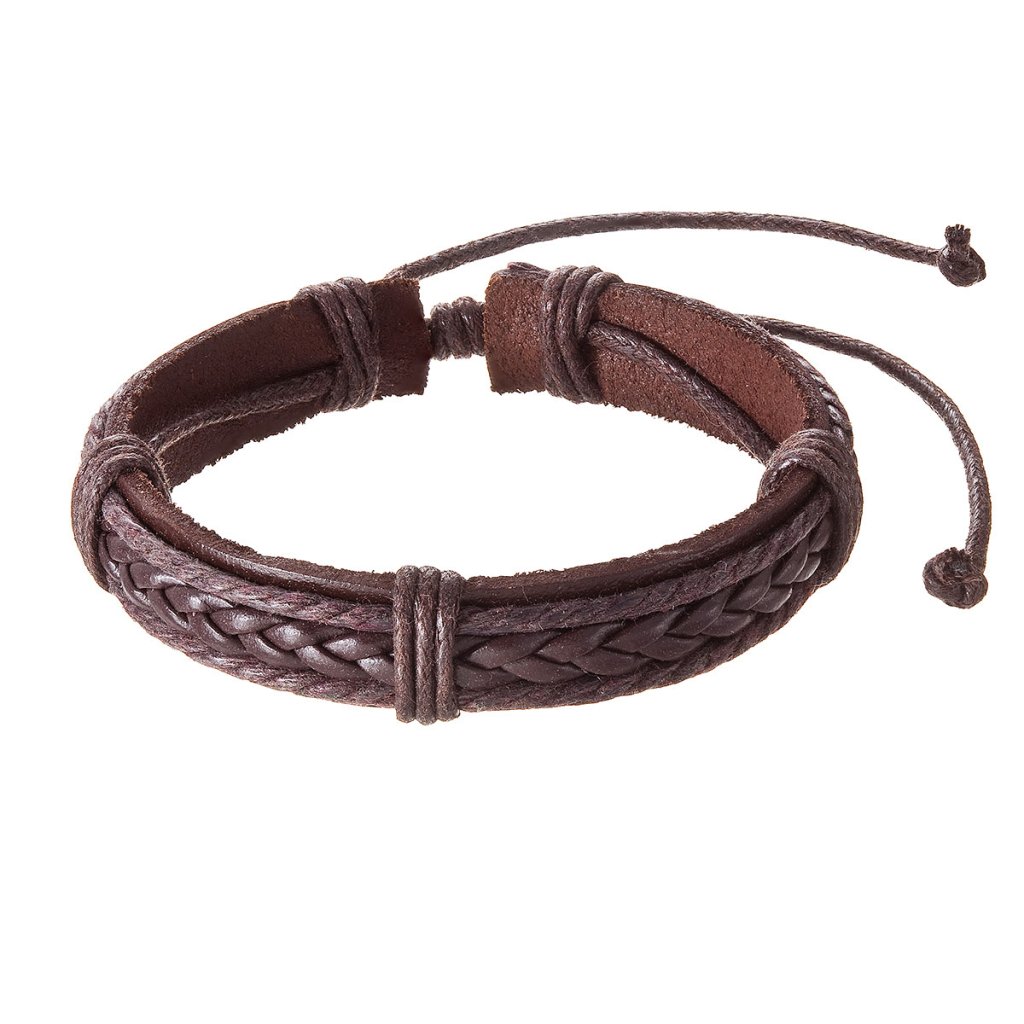 Náramok pánsky z hnedej koženky muži určite ocenia. Náramok je tvorený zapleteným pásikom z koženky tmavo hnedej farby a je zdobený zaujímavými prvkami. Náramok má univerzálnu nastaviteľnú veľkosť vďaka lanku s voskovou úpravou. Dĺžku náramku je možné jednoducho meniť zatiahnutím za konce šnúrky.Koženkový pánsky náramok je vhodný na neformálne príležitosti.
