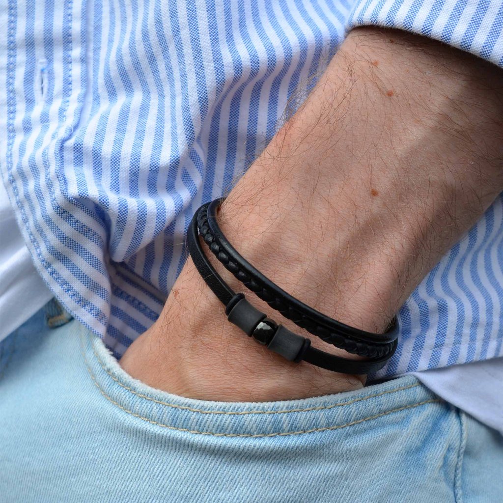Štýlový trojitý pánsky náramok kombinujúci čiernu recyklovanú kožu a moderné uhlíkové vlákno. Tento unikátny dizajn spája eleganciu a mužnosť, čím sa stáva ideálnym doplnkom pre každodenné aj formálne príležitosti. Nastaviteľná dĺžka 20+3 cm zaručuje perfektné padnutie a pohodlie pri nosení. Náramok je nielen estetický, ale aj vyrobený s ohľadom na udržateľnosť. Skvelý darček pre mužov, ktorí dbajú na štýl aj kvalitu.
