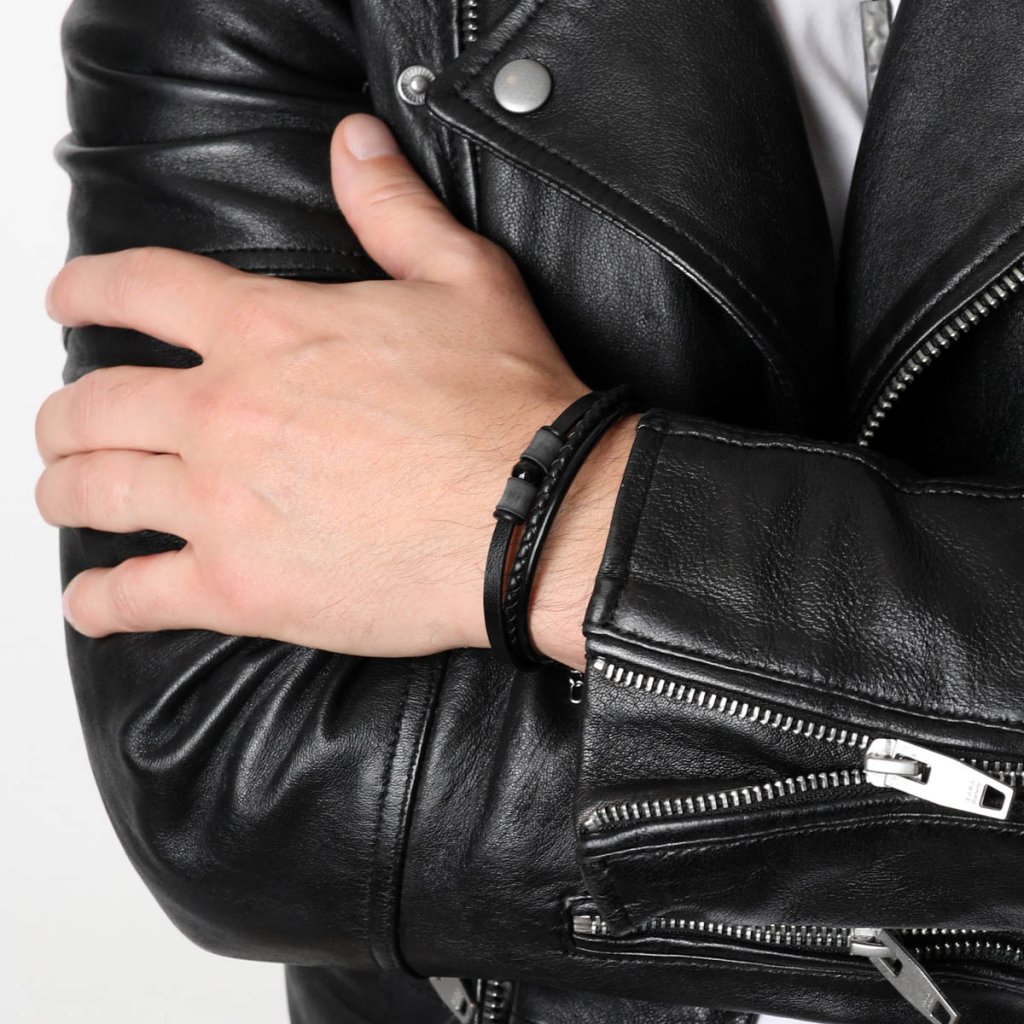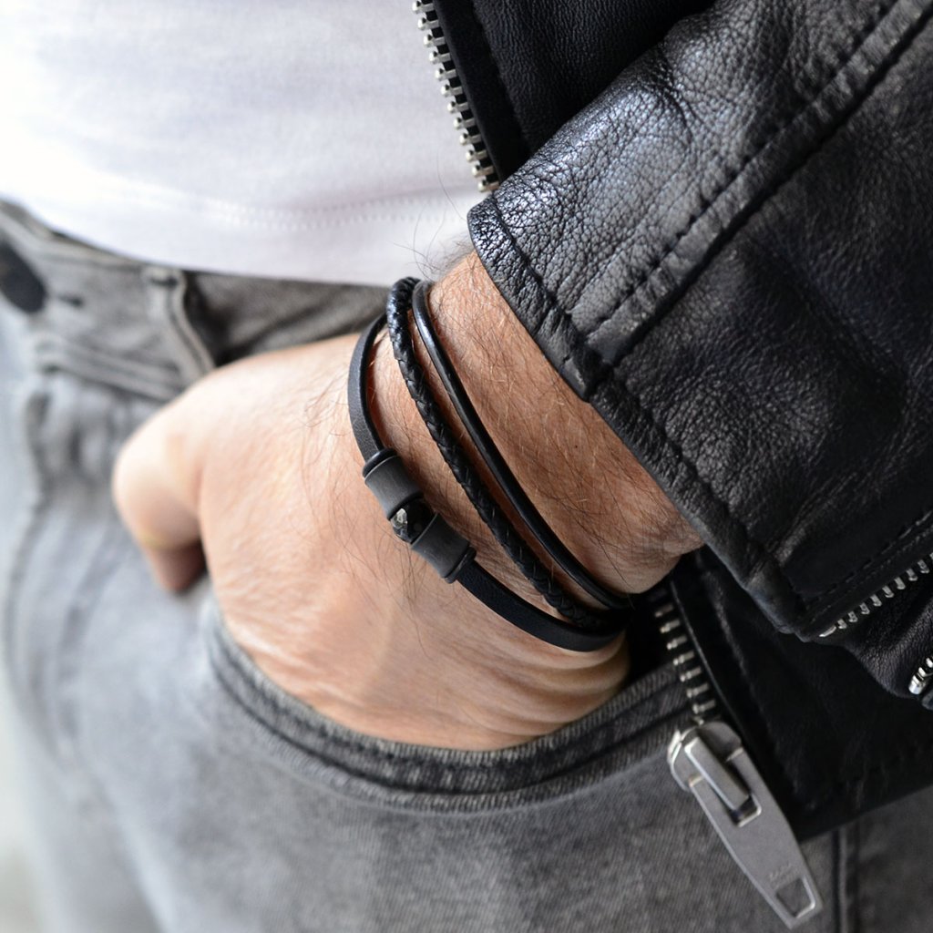 Náramok pánsky z rec.kože 43048.3 čierny