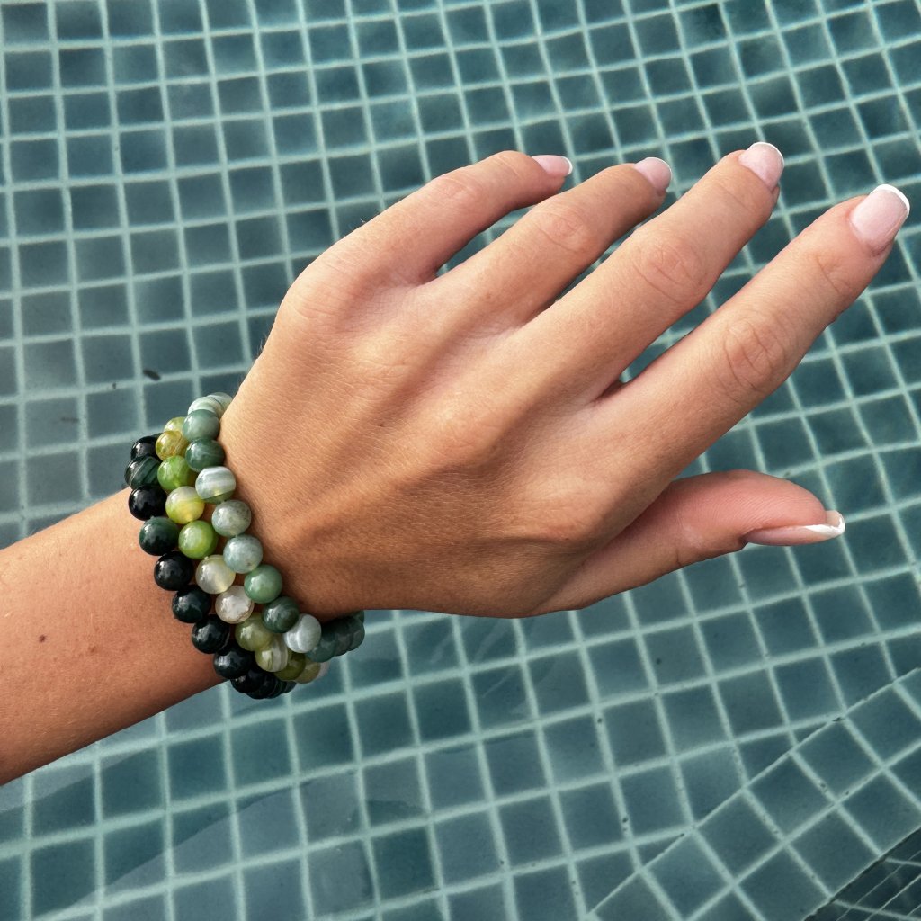 Nádherný náramok z pravých minerálnych kameňov machového achátu vyniká svojimi prirodzenými odtieňmi zelenej, ktoré pripomínajú bohaté machy a lesnú krajinu. Korálky o veľkosti 8 mm nesú jemné prírodné kresby, ktoré dodávajú náramku jedinečný a harmonický vzhľad. Minerál, ktorý je silne spätý s prírodou. Machový achát má schopnosť obnoviť narušenú rovnováhu, podporuje sebadôveru a napomáha sebapoznaniu. Elastické prevedenie zaisťuje ľahké nasadenie a pohodlné nosenie, takže sa dokonale prispôsobí zápästiu.