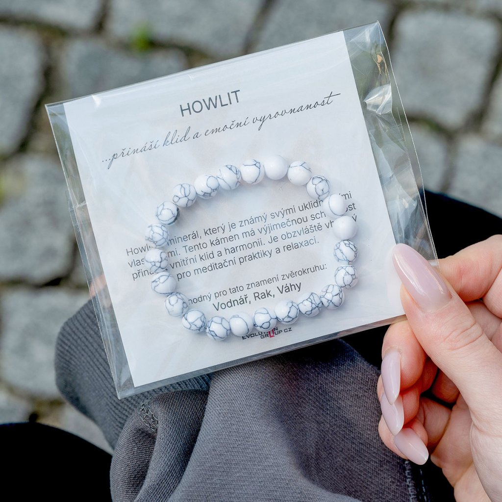 Howlit je známy ako kameň pokoja , trpezlivosti a vnútornej rovnováhy. Pomáha tíšiť rozbúrené emócie, podporuje sústredenie a napomáha pokojnému spánku. Je ideálnym pomocníkom pri strese, nespavosti alebo v obdobiach, kedy treba nájsť vnútorný hlas a upokojenie. Jeho jemná, ale silná energia harmonizuje telo aj myseľ.