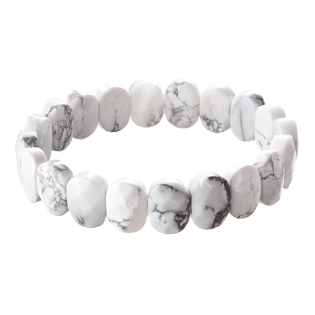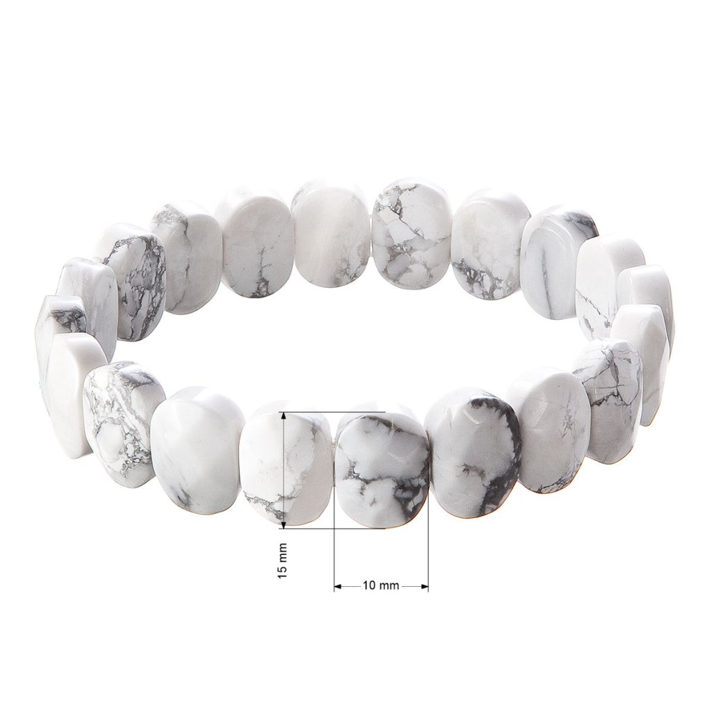 Zahaľte sa do jemnej elegancie s týmto nádherným náramkom z pravého howlitu. Namiesto klasických korálikov je zložený z oválnych kameňov s jemne brúsenými plochami, ktoré zaisťujú krásnu hru svetla a vynikajú svojou čistou bielou farbou s jemnými šedými žilkami, ktoré vytvárajú jedinečné prírodné vzory. Howlit je minerál, ktorý je známy svojimi upokojujúcimi vlastnosťami. Tento kameň má výnimočnú schopnosť prinášať vnútorný pokoj a harmóniu. Je obzvlášť vhodný pre meditačné praktiky a relaxáciu. Elastické prevedenie zaisťuje ľahké nosenie a pohodlné prispôsobenie zápästia.