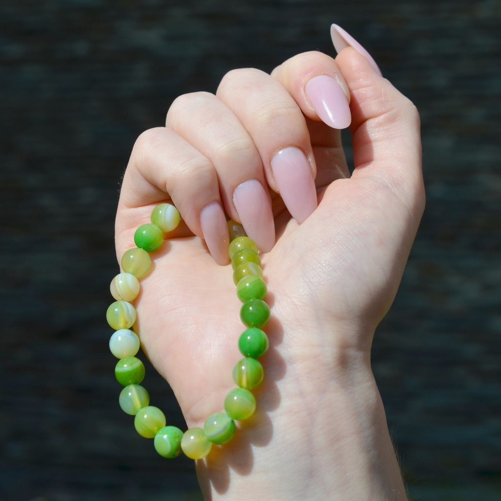 Tento svieži náramok z prírodného olivínu septembra jemnými odtieňmi zelenožltej farby, ktoré pripomínajú letné slnko presvitajúce lístím. Korálky s priemerom 8 mm majú priesvitný až ľahko mliečny vzhľad. Olivín pôsobí ľahko, optimisticky a zároveň elegantne – ideálny pre tých, ktorí hľadajú pozitívnu energiu a vnútornú sviežosť.