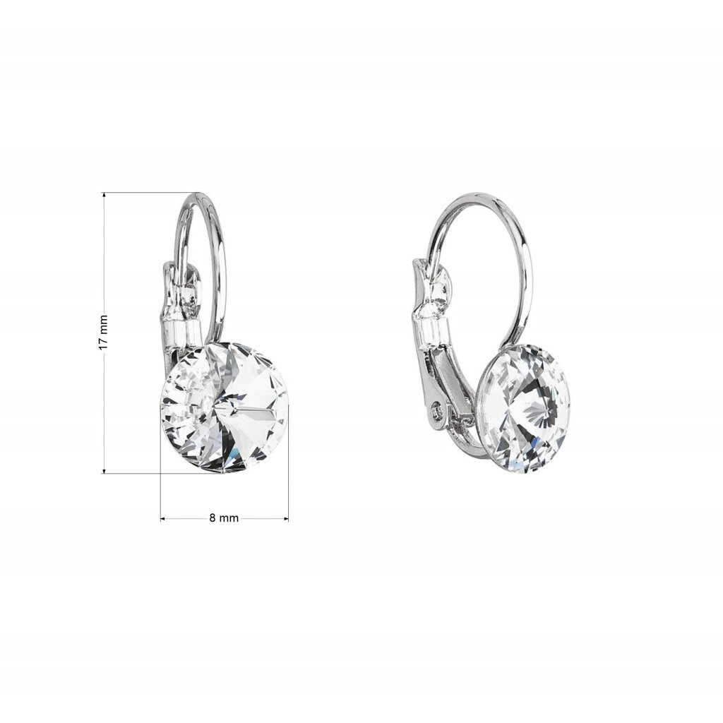 Náušnice majú dĺžku 17 mm a zapínajú sa na klapku . Šperk je zdobený okrúhlym 8 mm širokým Preciosa kryštálom v bielej farbe.